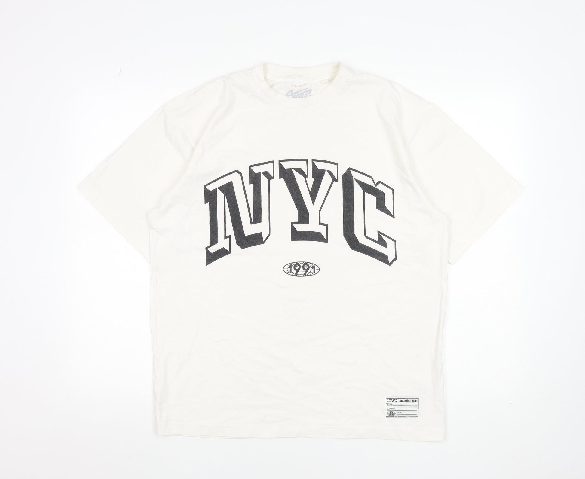 Pull & Bear Men's White NYC 1991 Graphic Cotton T-Shirt Size S