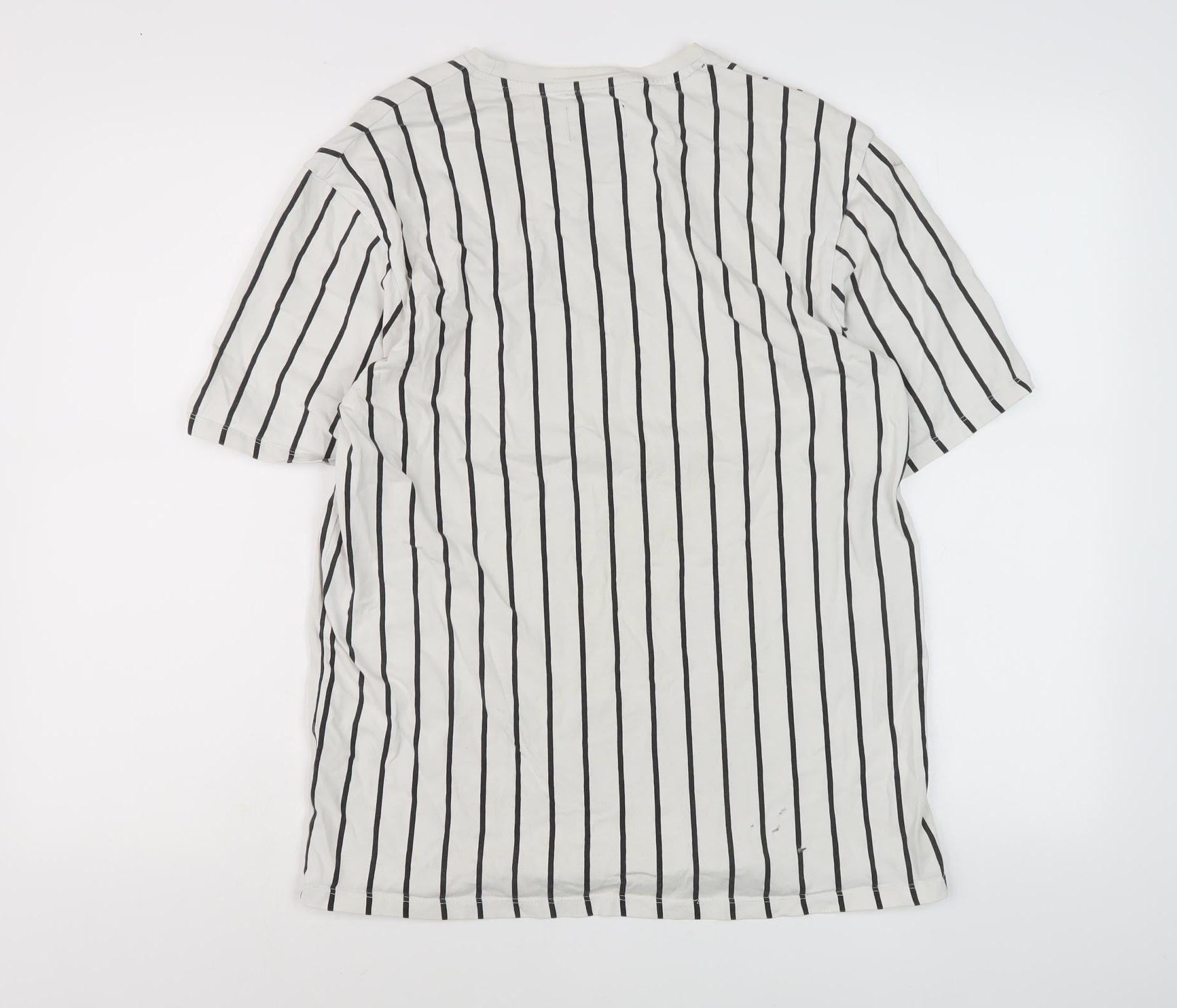 Pull & Bear Men's White Striped T-Shirt, Size M