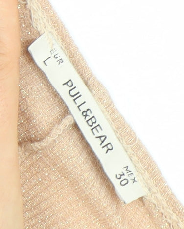 Pull&Bear Women Beige L Bodycon Knit Sleeveless Scoop Neck Dress