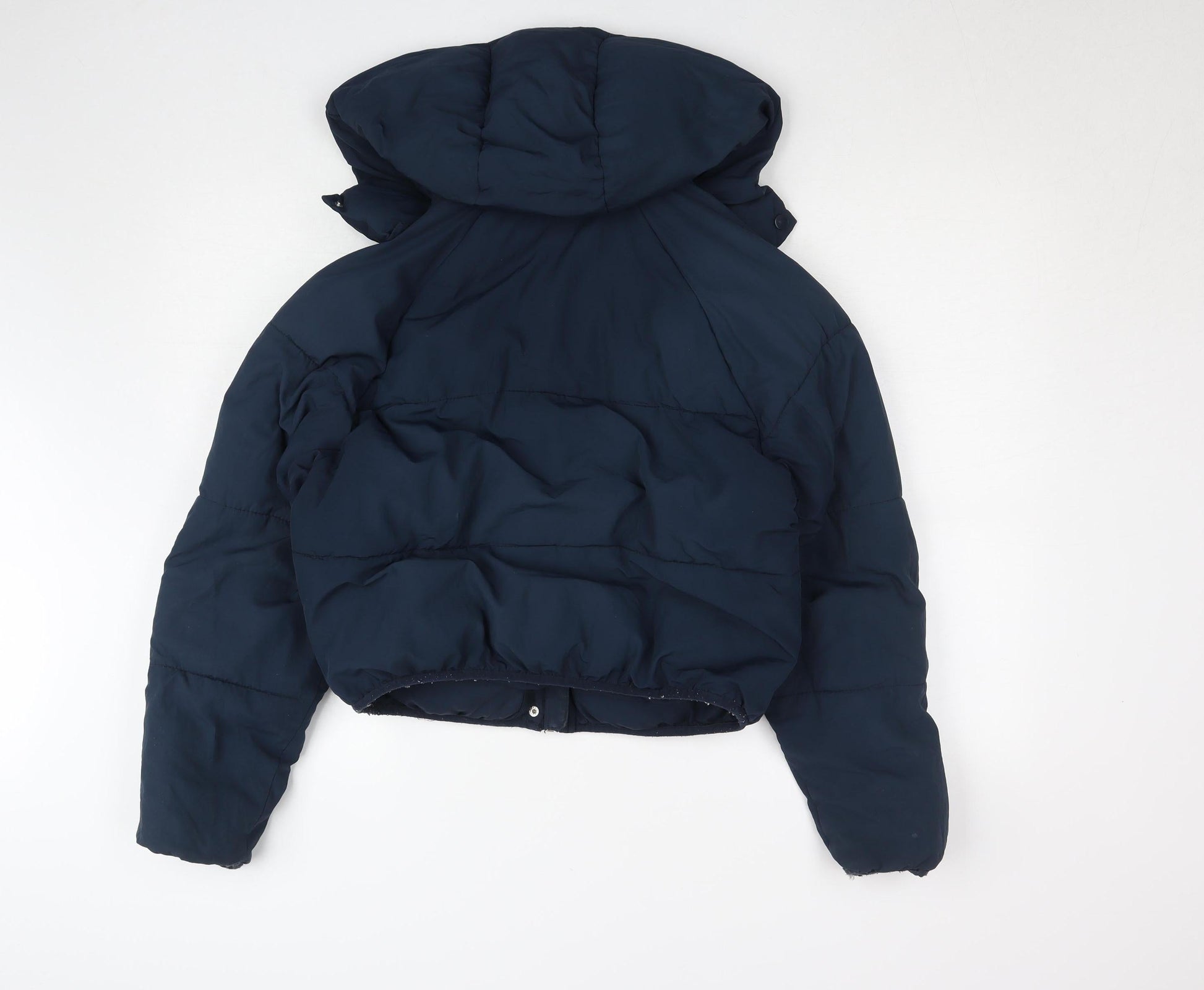 Pull & Bear Women Blue S Cropped Puffer Jacket Hooded Winter Coat