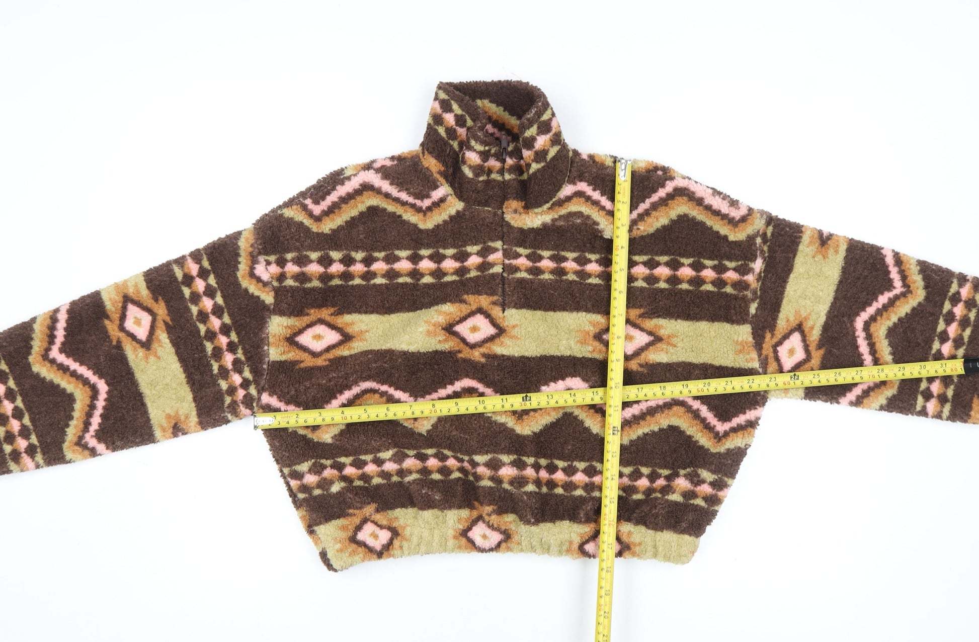 Pull&Bear Women Brown Aztec Fleece Cropped Half Zip Jacket Size 8