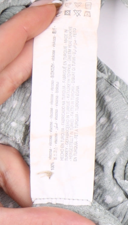 Pull&Bear Women Green Polka Dot Short A-Line Dress Size 14
