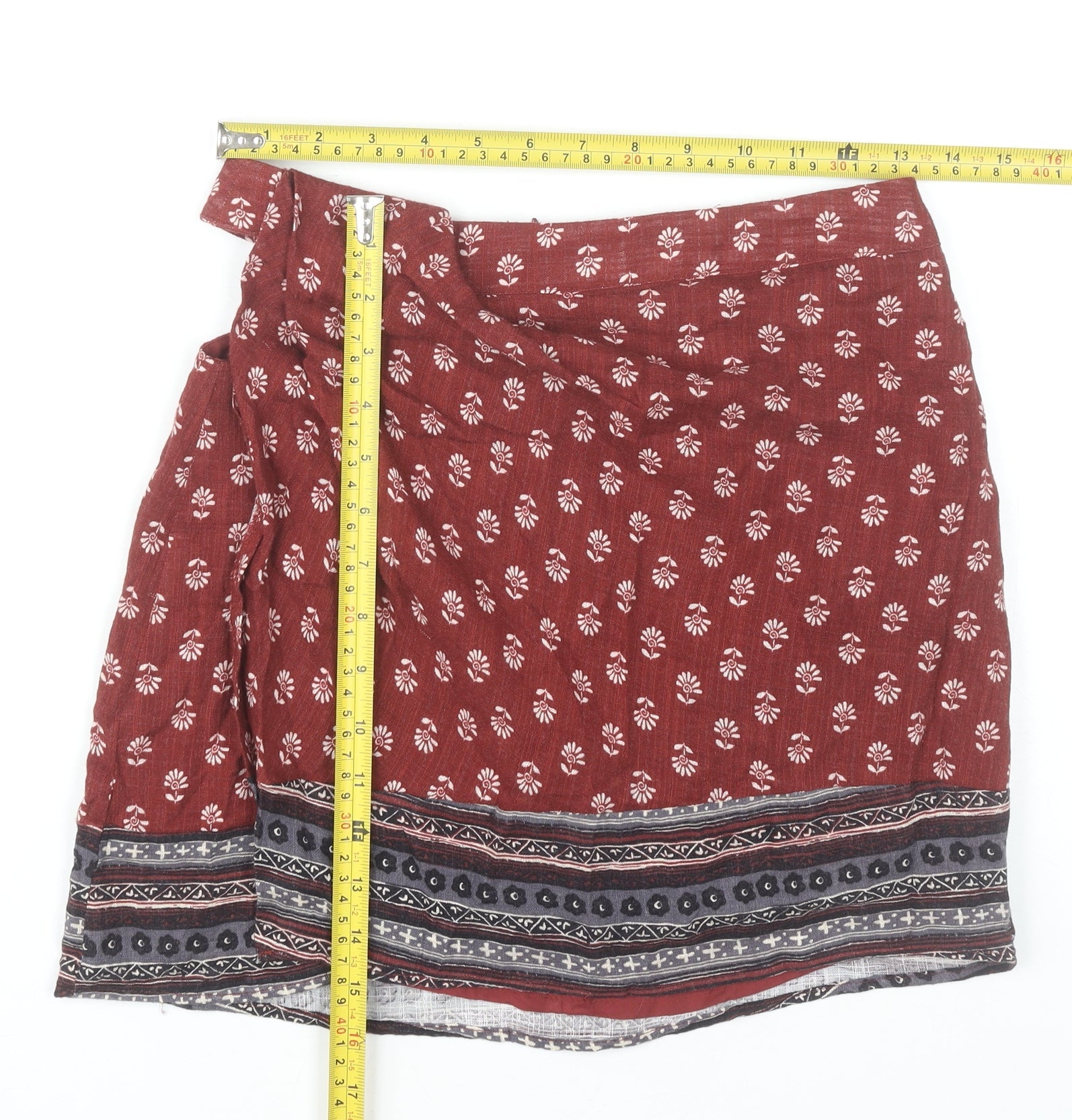 Pull&Bear Women Red Wrap Floral Short Skirt Size 12 Boho Viscose Blend
