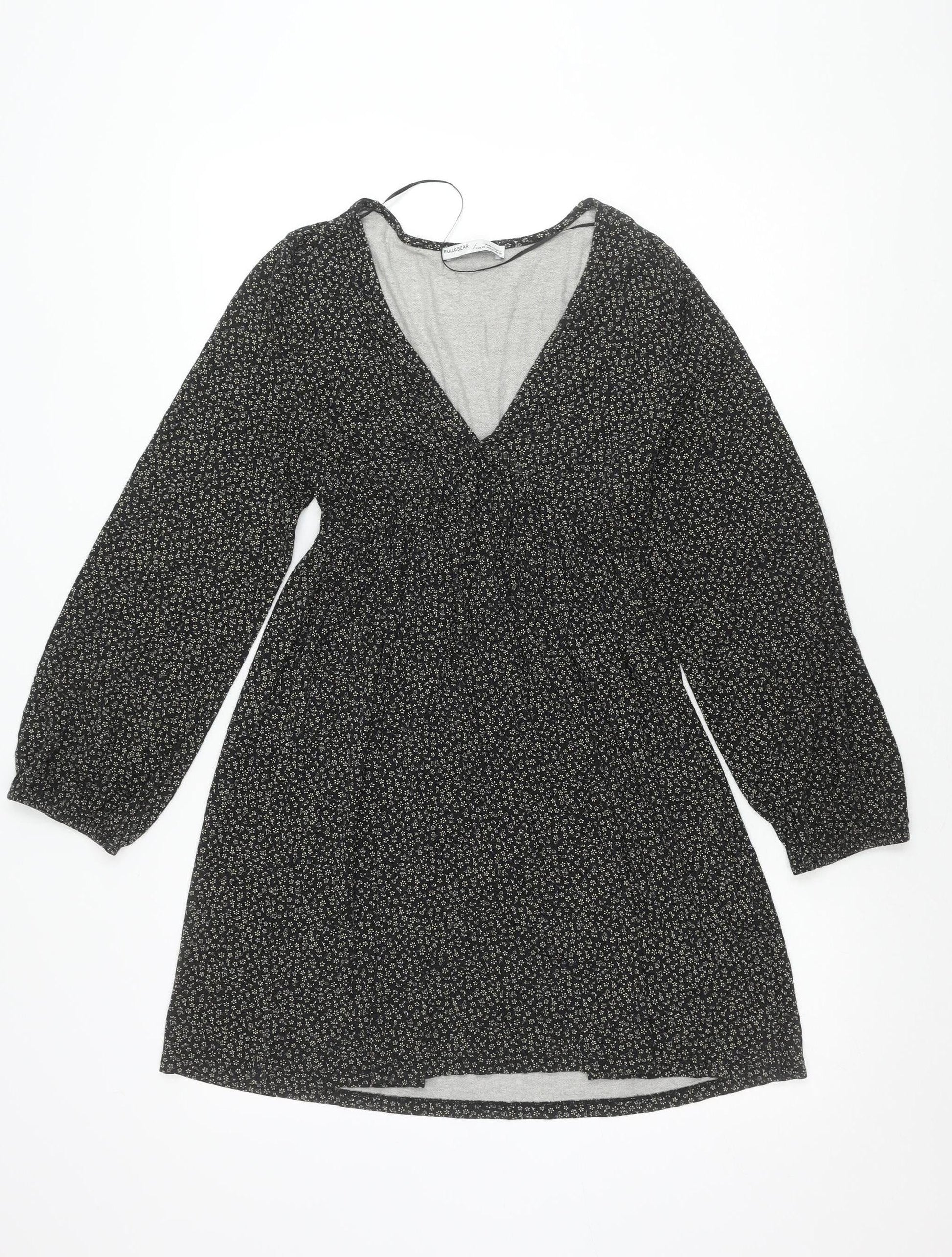 Pull & Bear Women’s Black XS Floral V-Neck Dress
