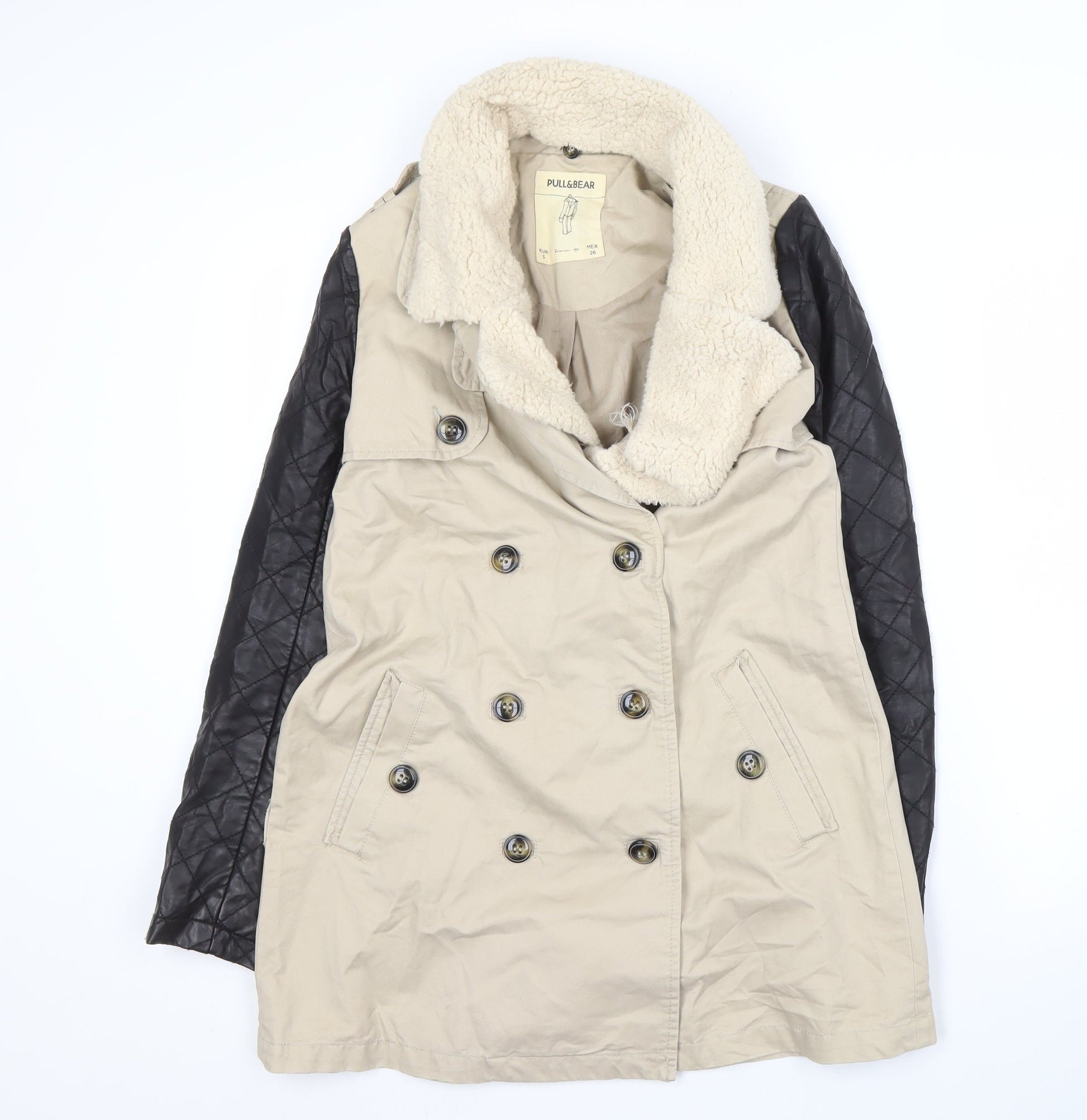 Pull&Bear Women's Beige Pea Coat Size S - Casual Winter Wear