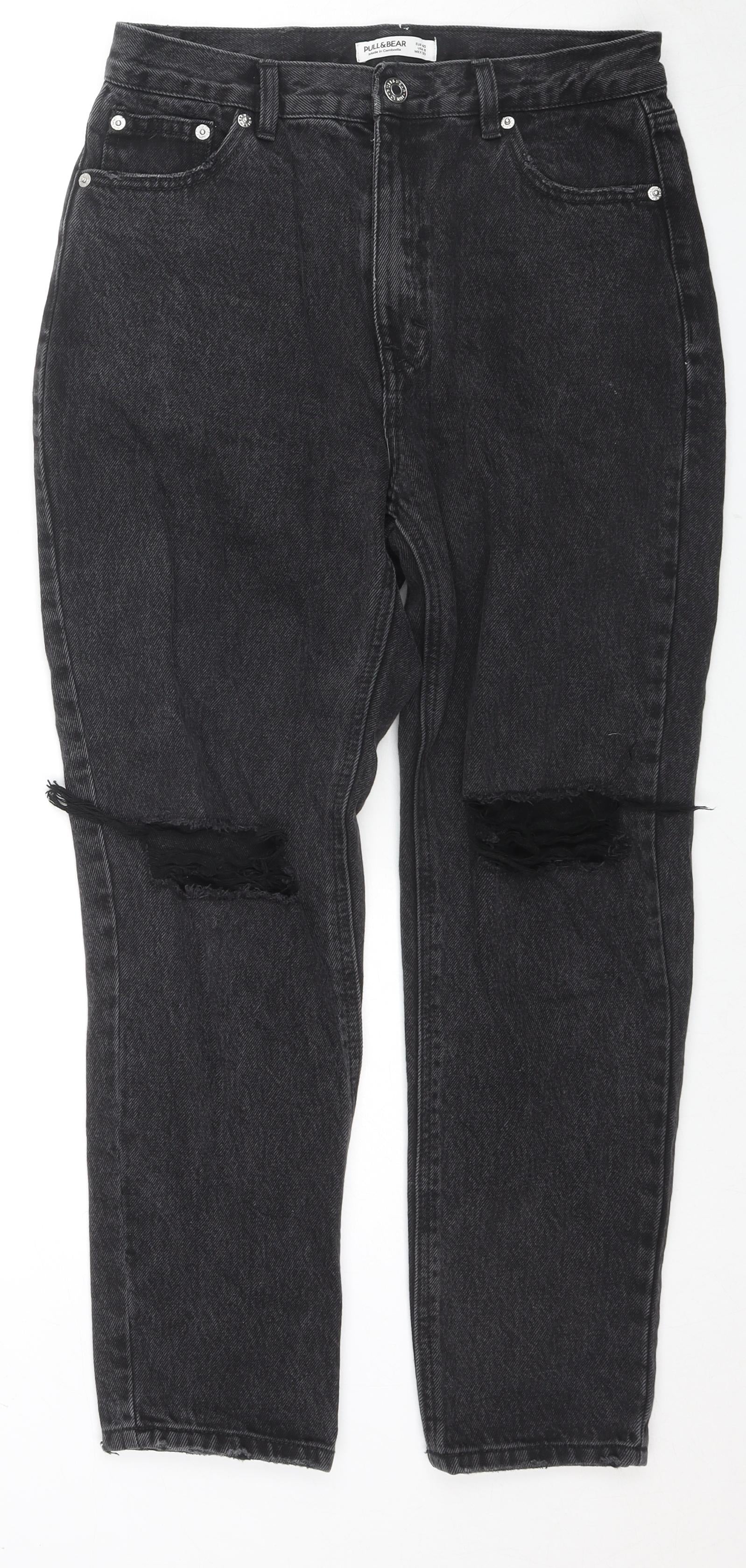 Pull&Bear Womens Black Cotton Straight Jeans Size 12 L27 in Regular Zip