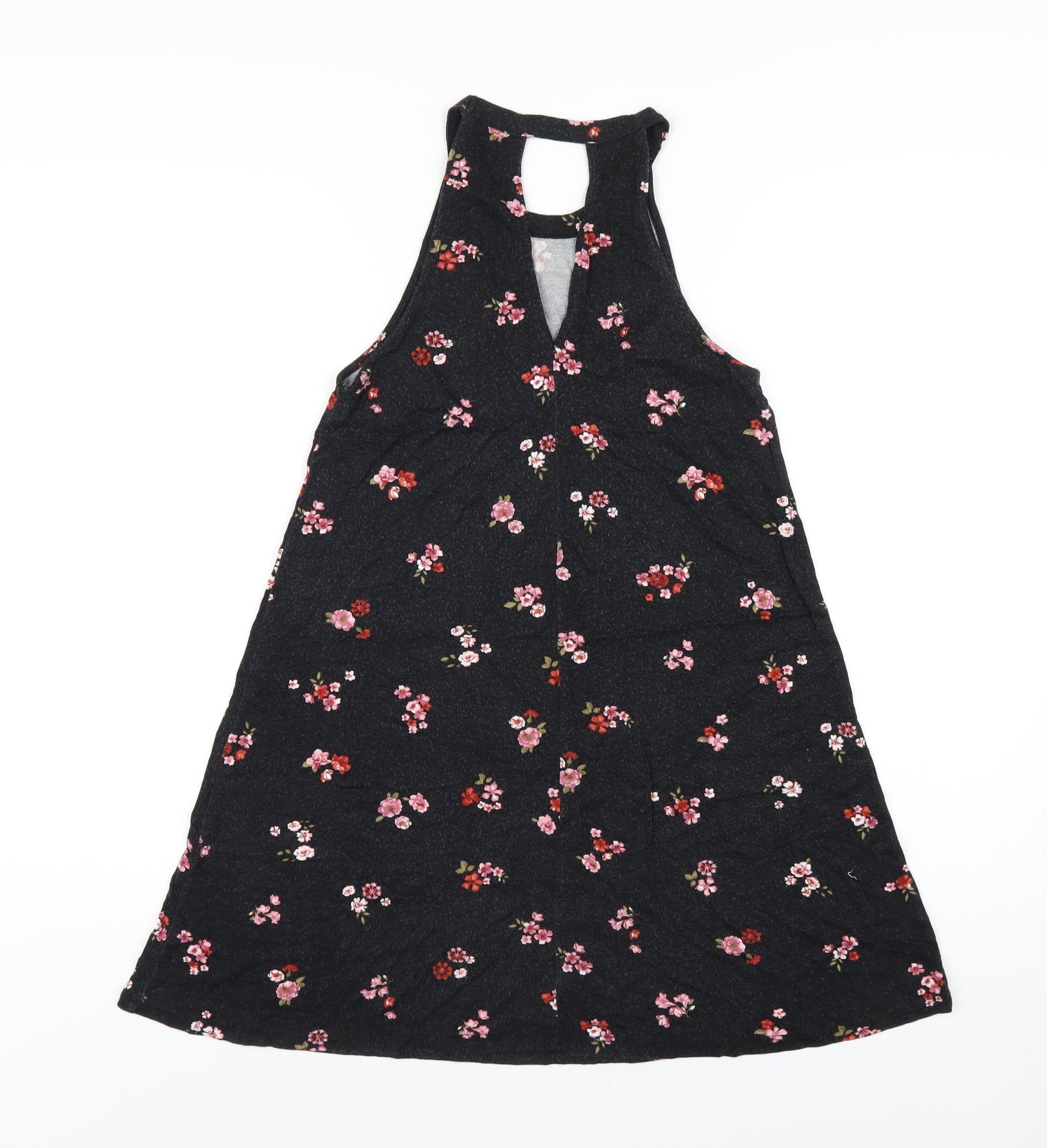 Pull&Bear Womens Black Floral Viscose A-Line Size S Round Neck Pullover