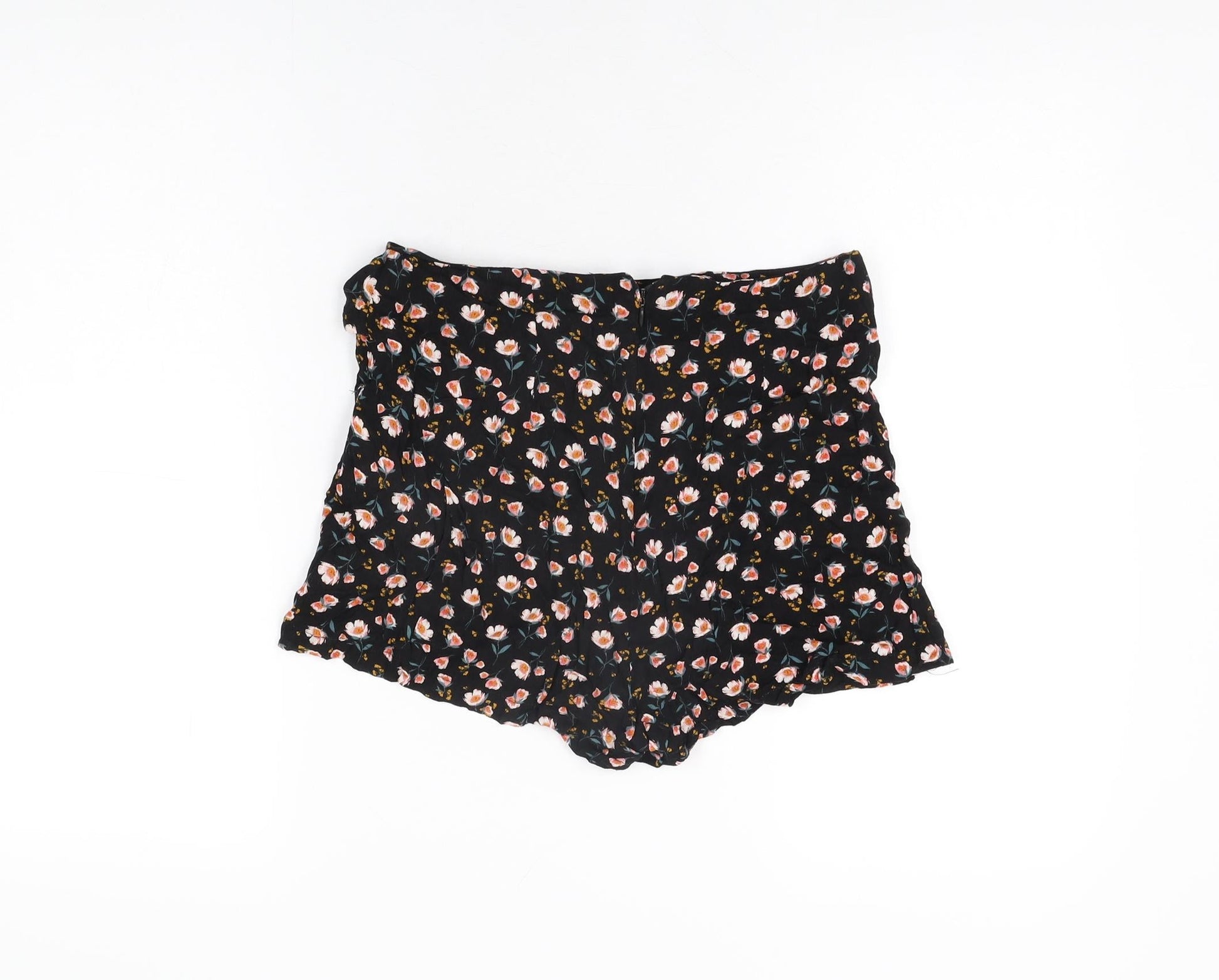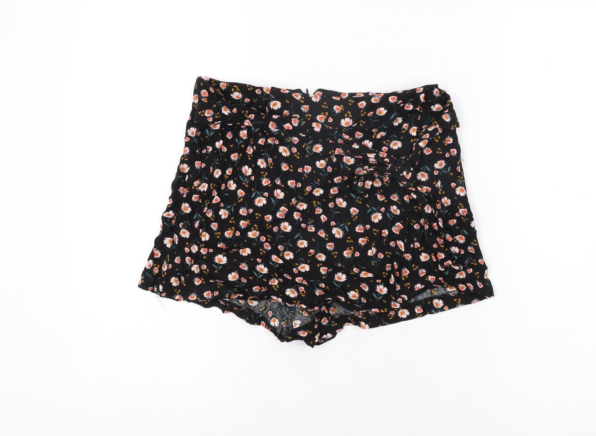 Pull&Bear Womens Black Floral Viscose Basic Shorts Size M L3 in Regular Zip