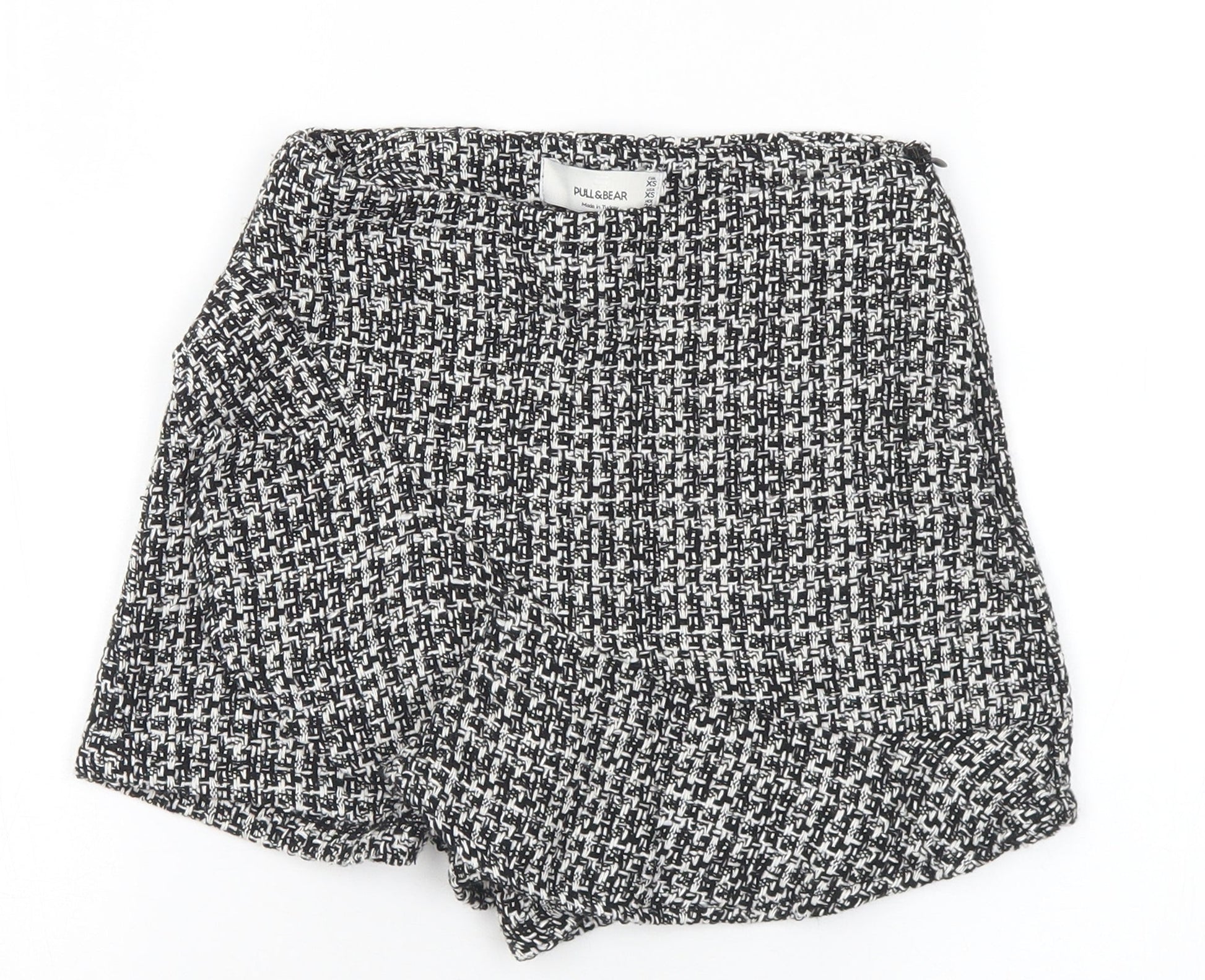 Pull&Bear Womens Black Geometric Cotton Hot Pants Shorts Size XS L3 in Regular