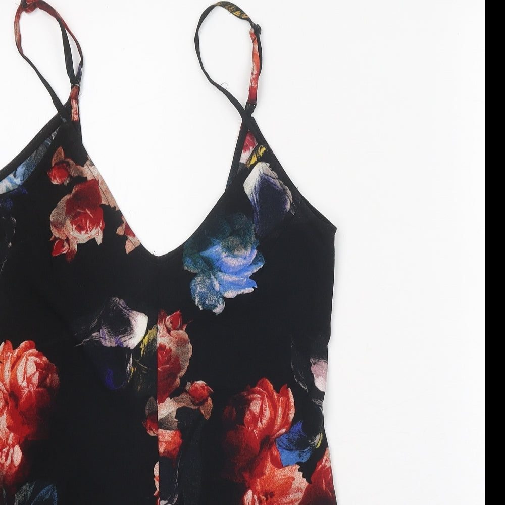 Pull&Bear Womens Black Geometric Polyester Playsuit One-Piece Size S Zip
