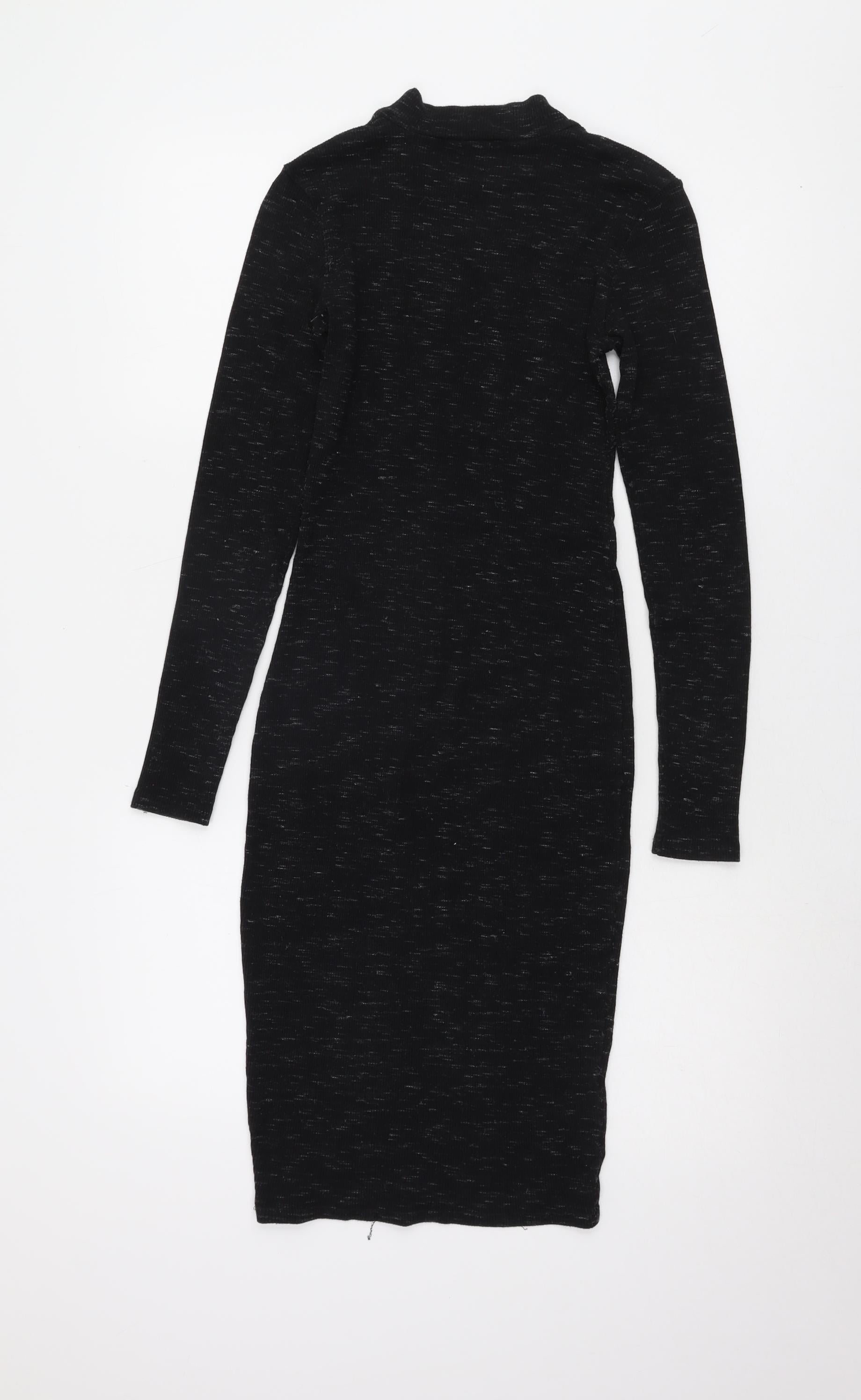 Pull & Bear Women's Black Mock Neck Bodycon Dress Size 12