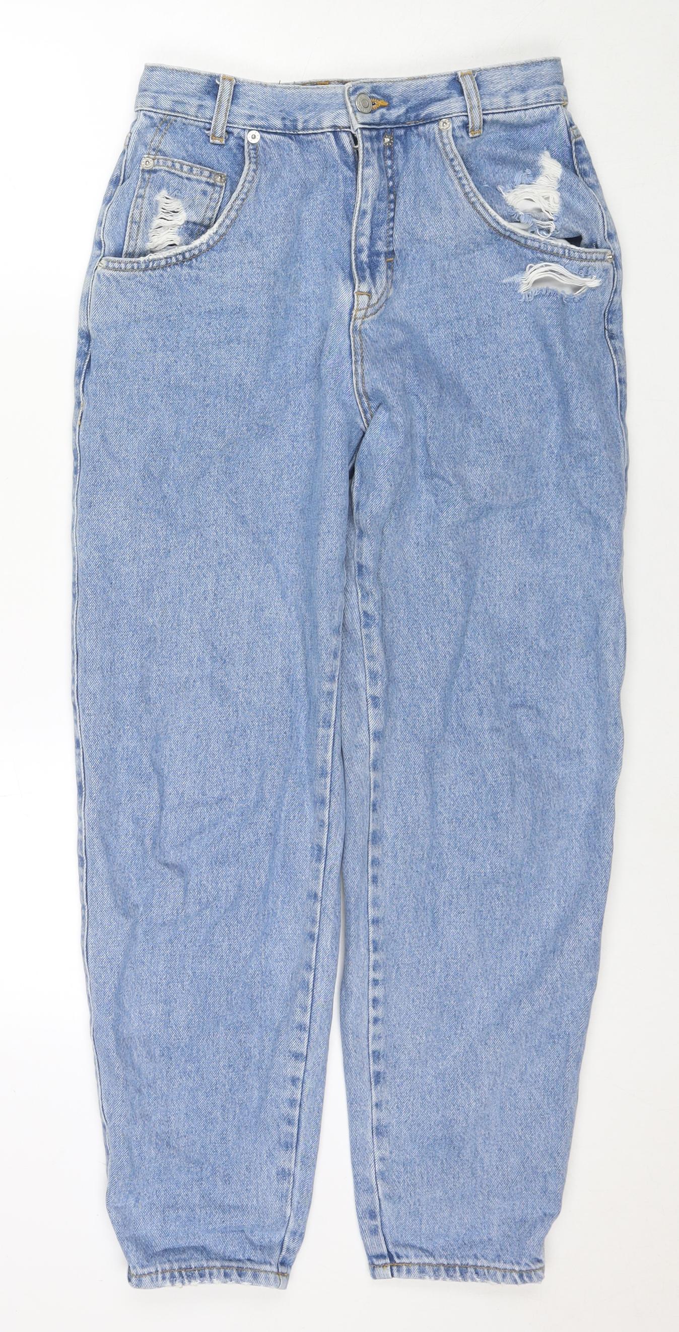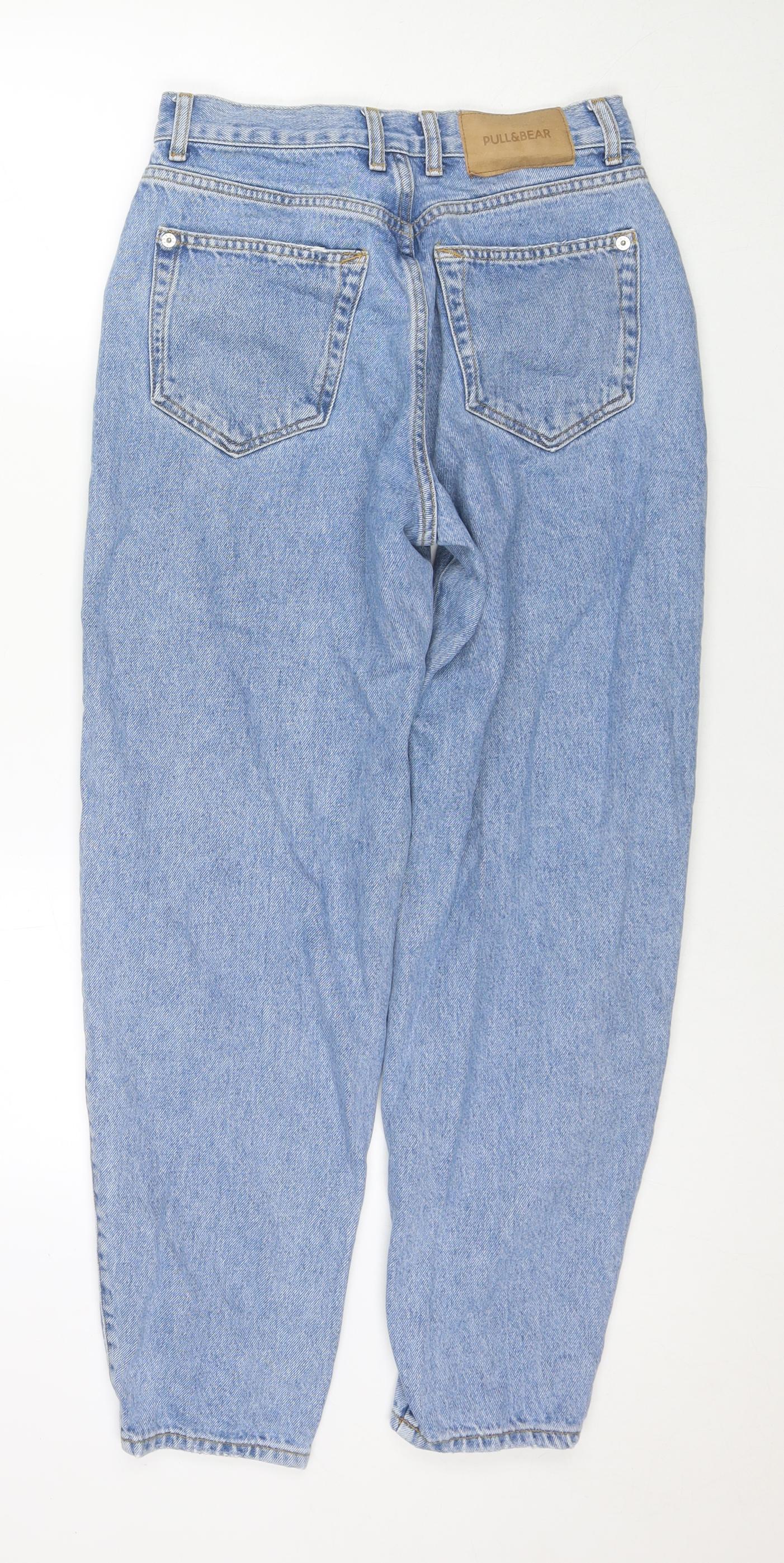 Pull&Bear Womens Blue Cotton Mom Jeans Size 8 L28 in Regular Zip