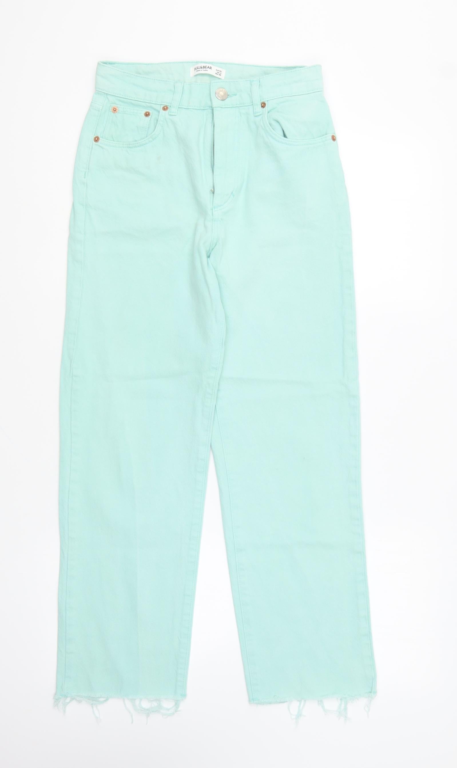 Pull&Bear Womens Blue Cotton Straight Jeans Size 4 L26 in Regular Button