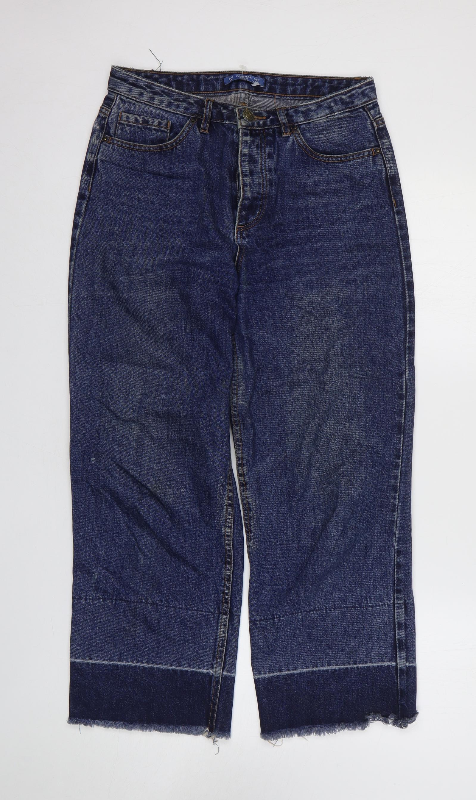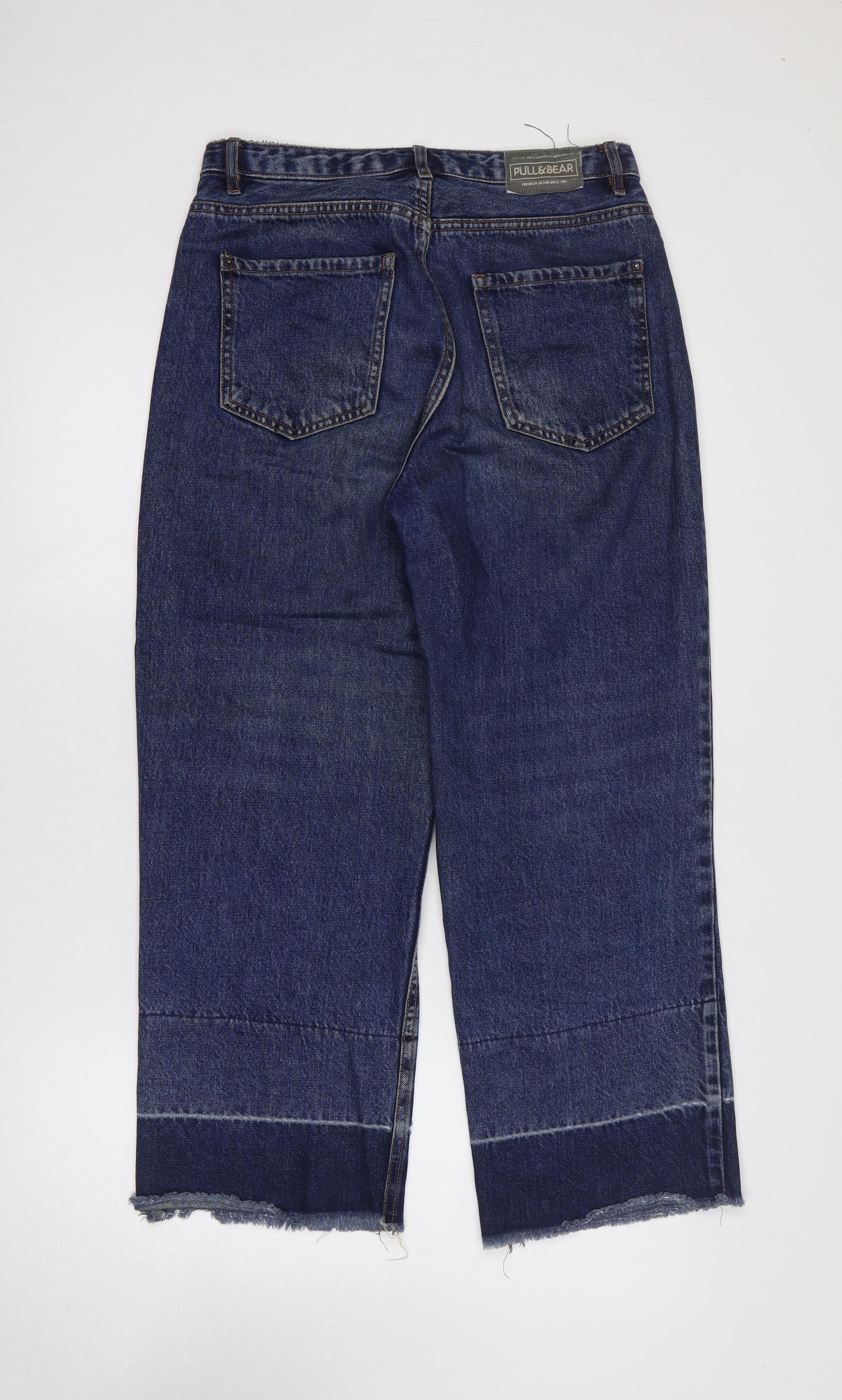 Pull&Bear Womens Blue Cotton Straight Jeans Size 6 L26 in Regular Zip