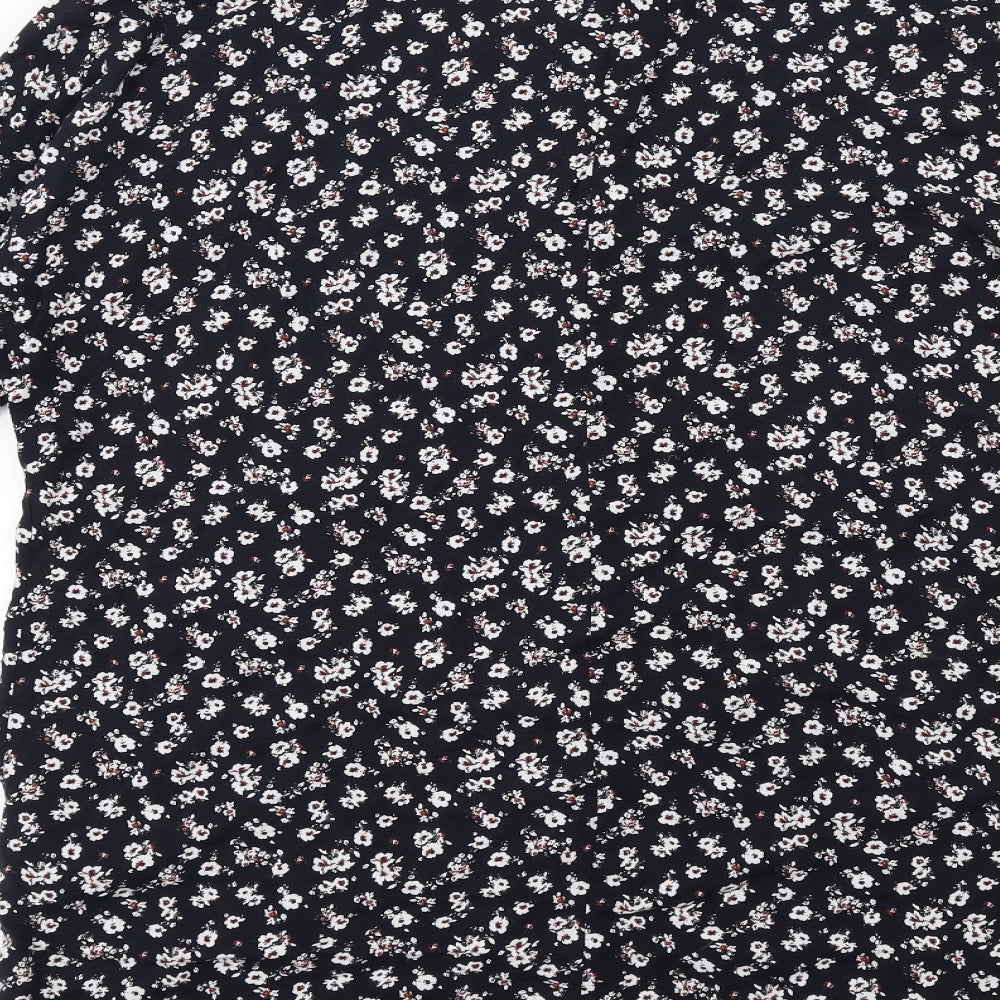 Pull&Bear Womens Blue Floral Viscose Shirt Dress Size L Collared Button