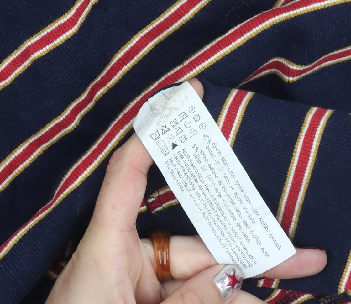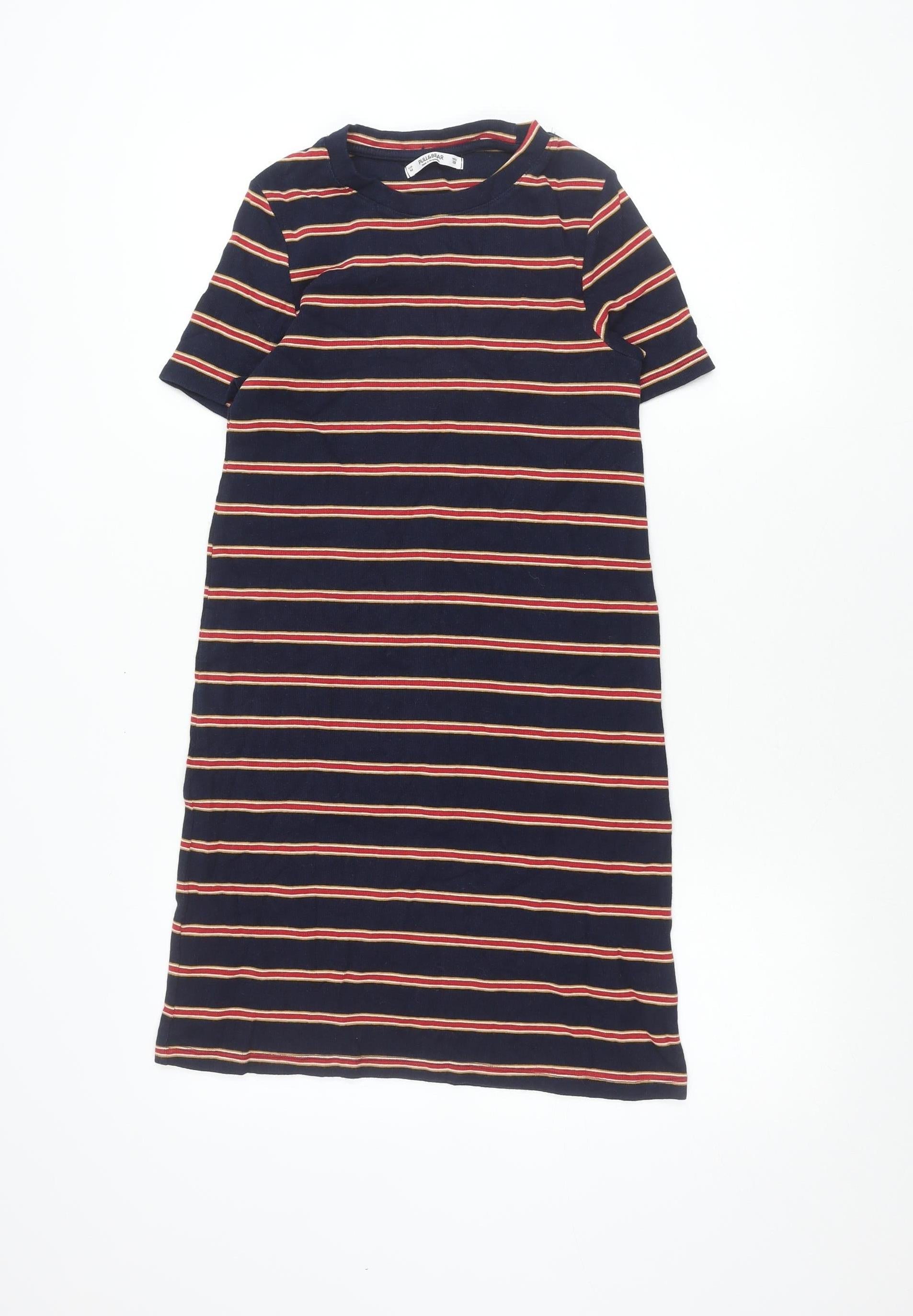 PULL&BEAR Women's Blue Striped Cotton Knee Length T-Shirt Dress Size 12