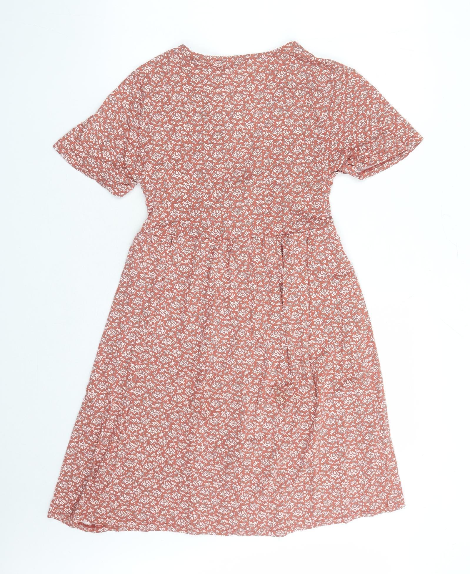 Pull&Bear Womens Brown Floral Polyester A-Line Size M V-Neck Pullover