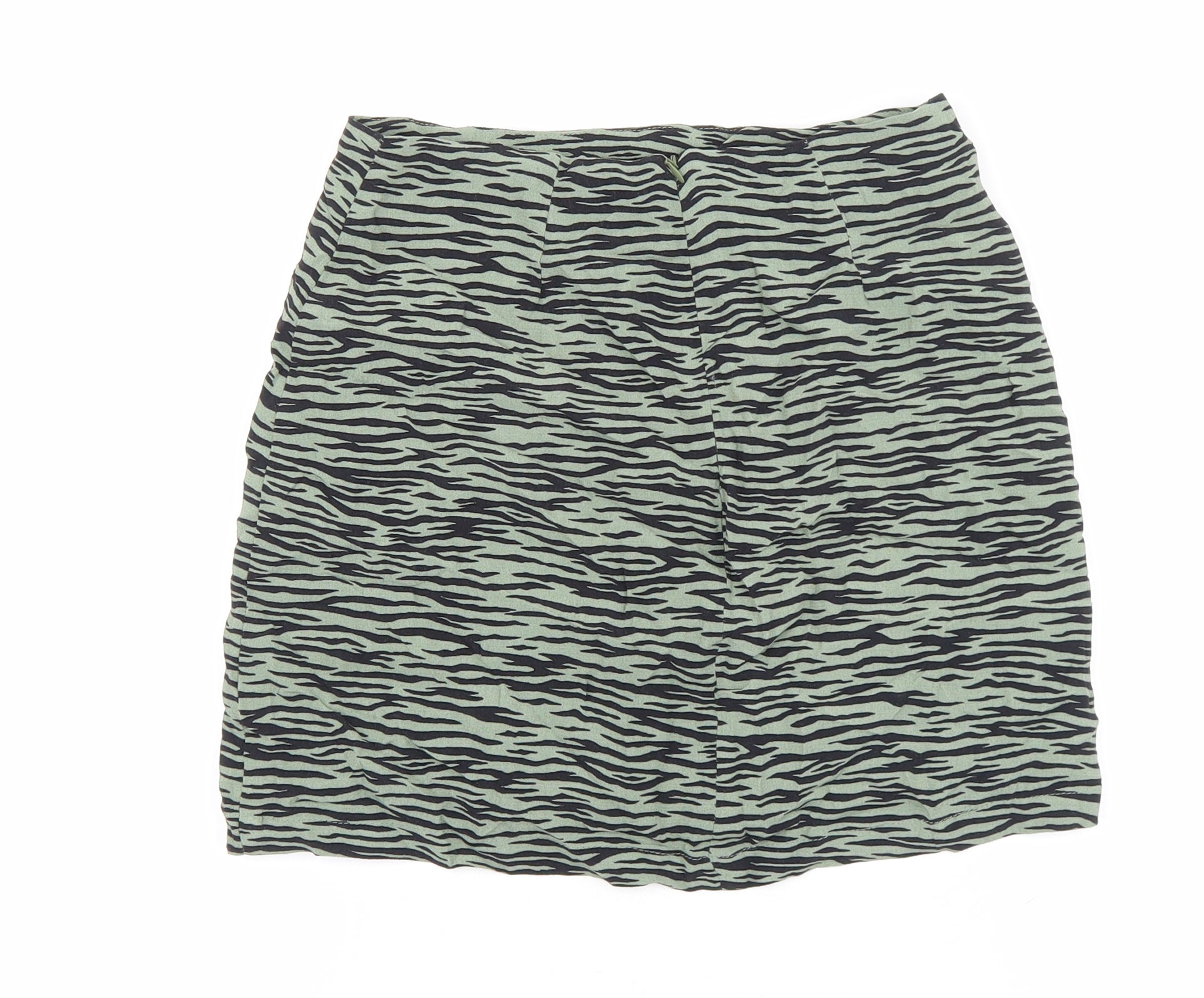 Pull&Bear Womens Green Animal Print Polyester Mini Skirt Size S Zip - Tiger Pattern
