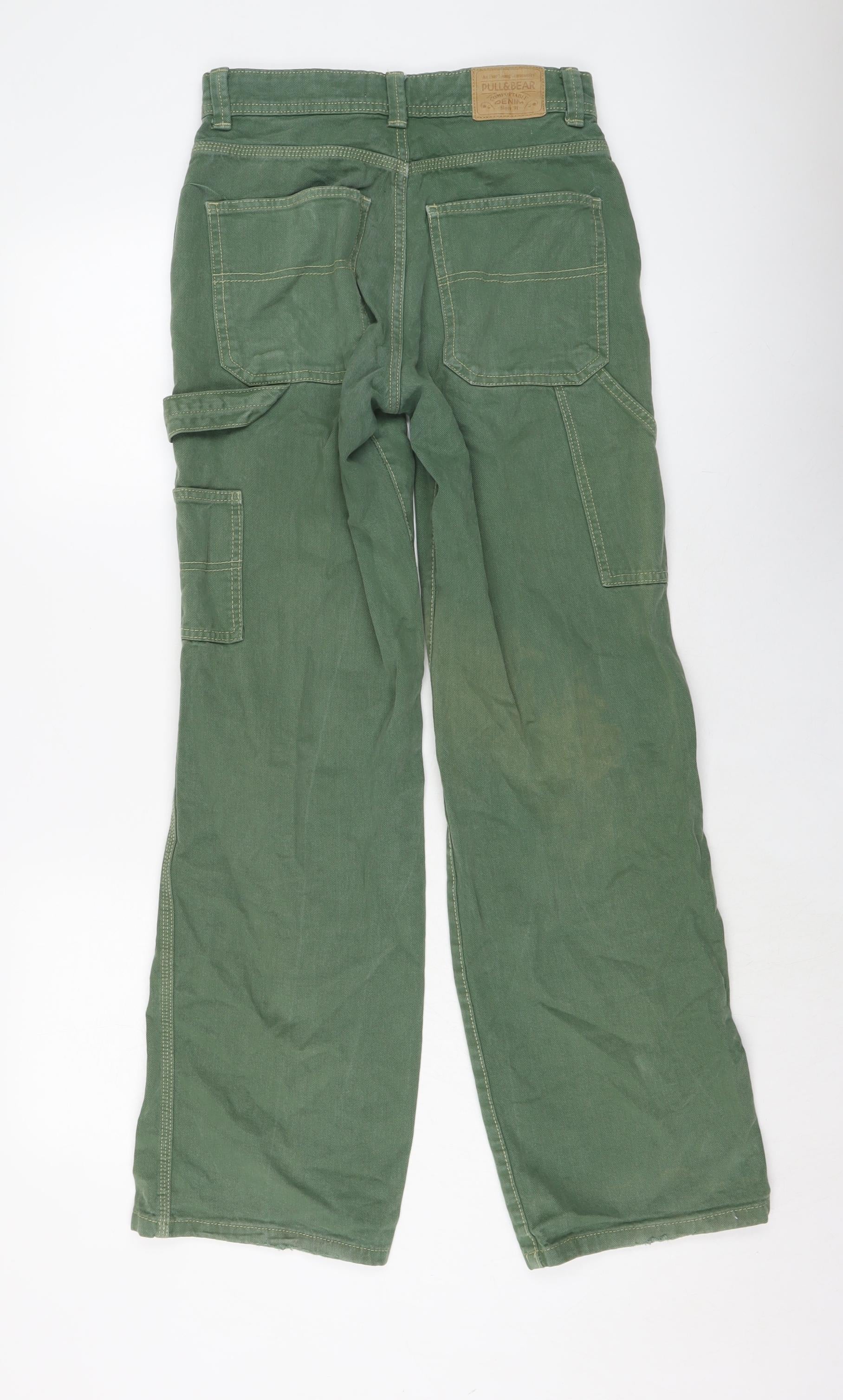Pull&Bear Womens Green Cotton Wide-Leg Jeans Size 6 L31 in Regular Button