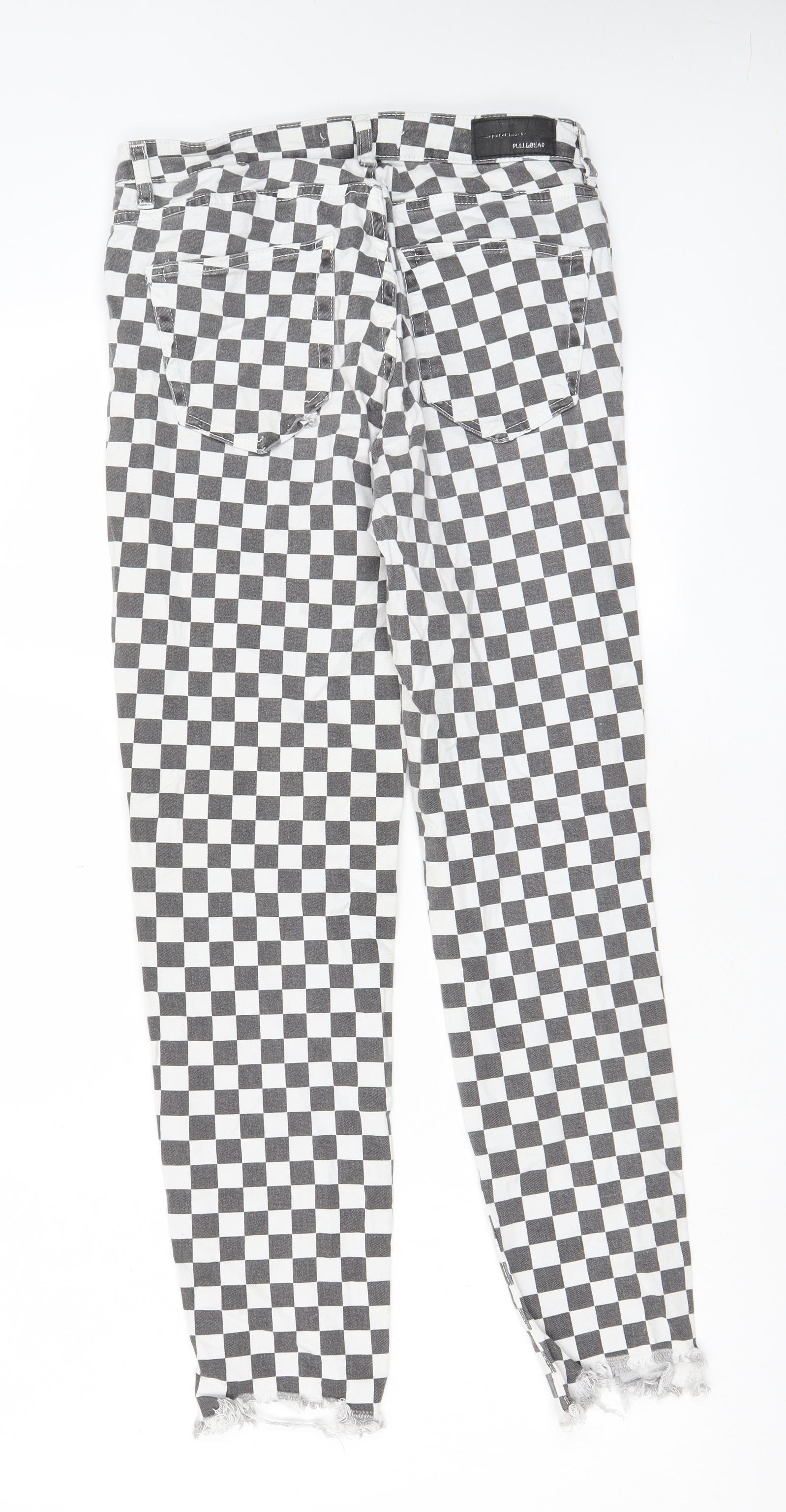 Pull&Bear Womens Grey Check Cotton Straight Jeans Size 30 in L28 in Regular Zip - Pockets