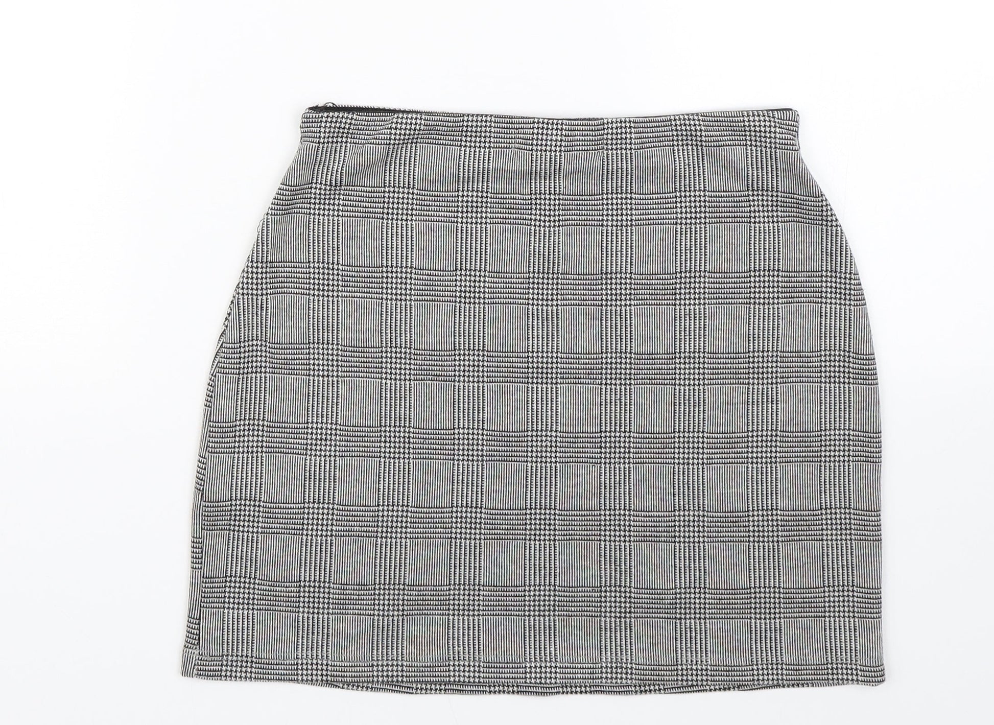 Pull&Bear Womens Grey Check Straight & Pencil Skirt Size S