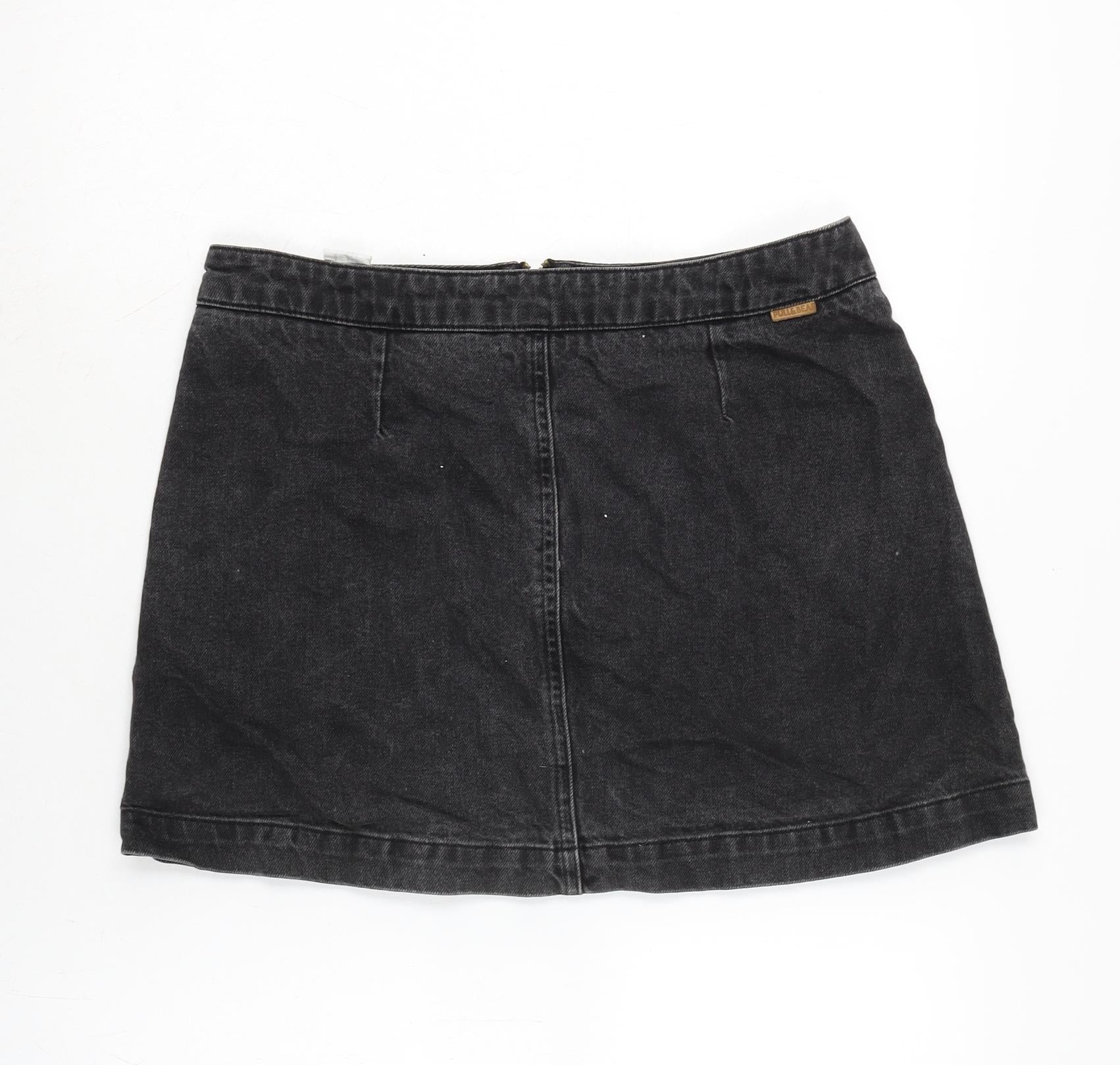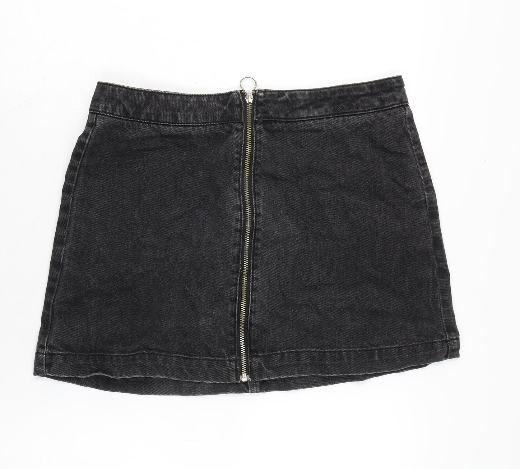 Pull&Bear Womens Grey Cotton A-Line Skirt Size L Zip
