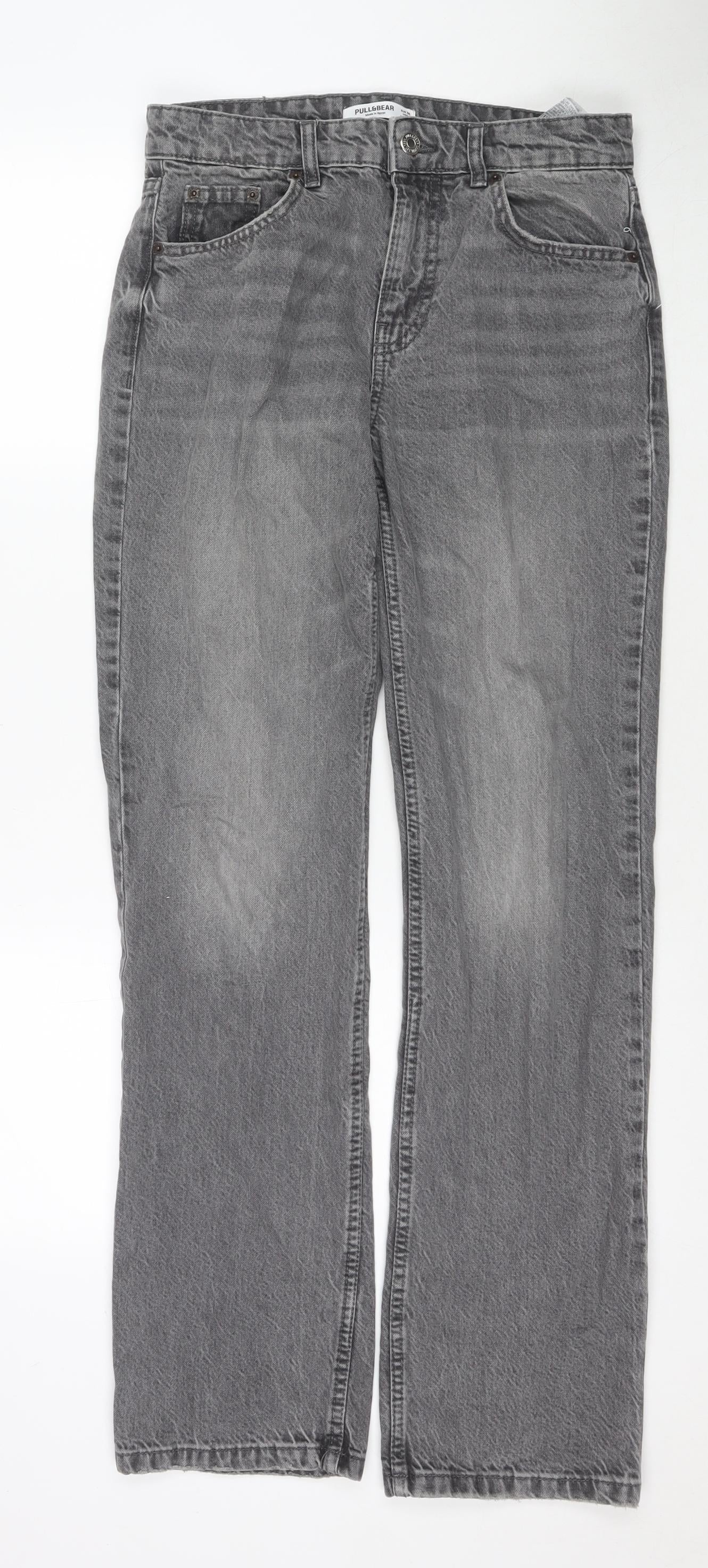 Pull&Bear Womens Grey Cotton Mom Jeans Size 8 L32 in Regular Zip