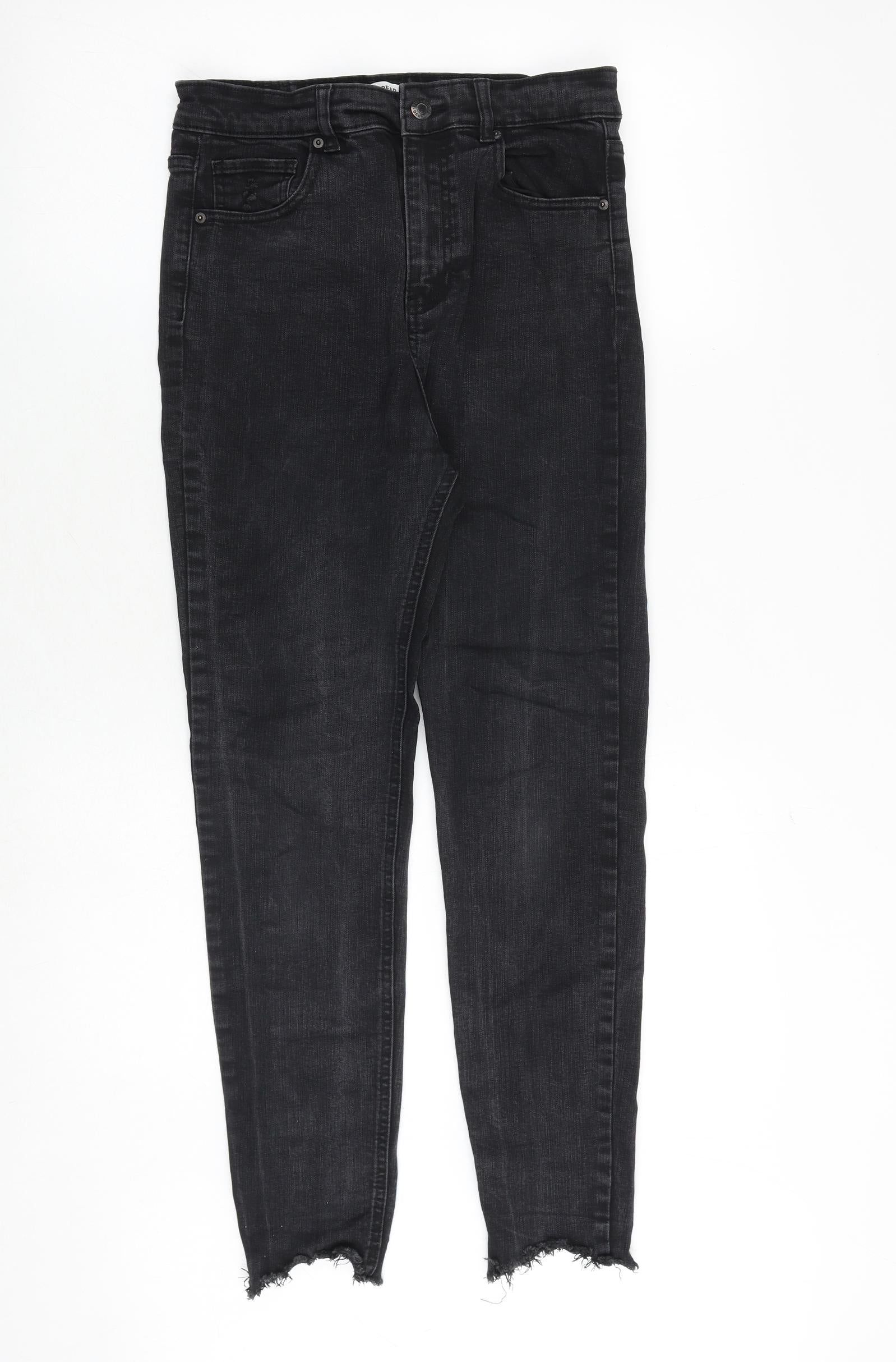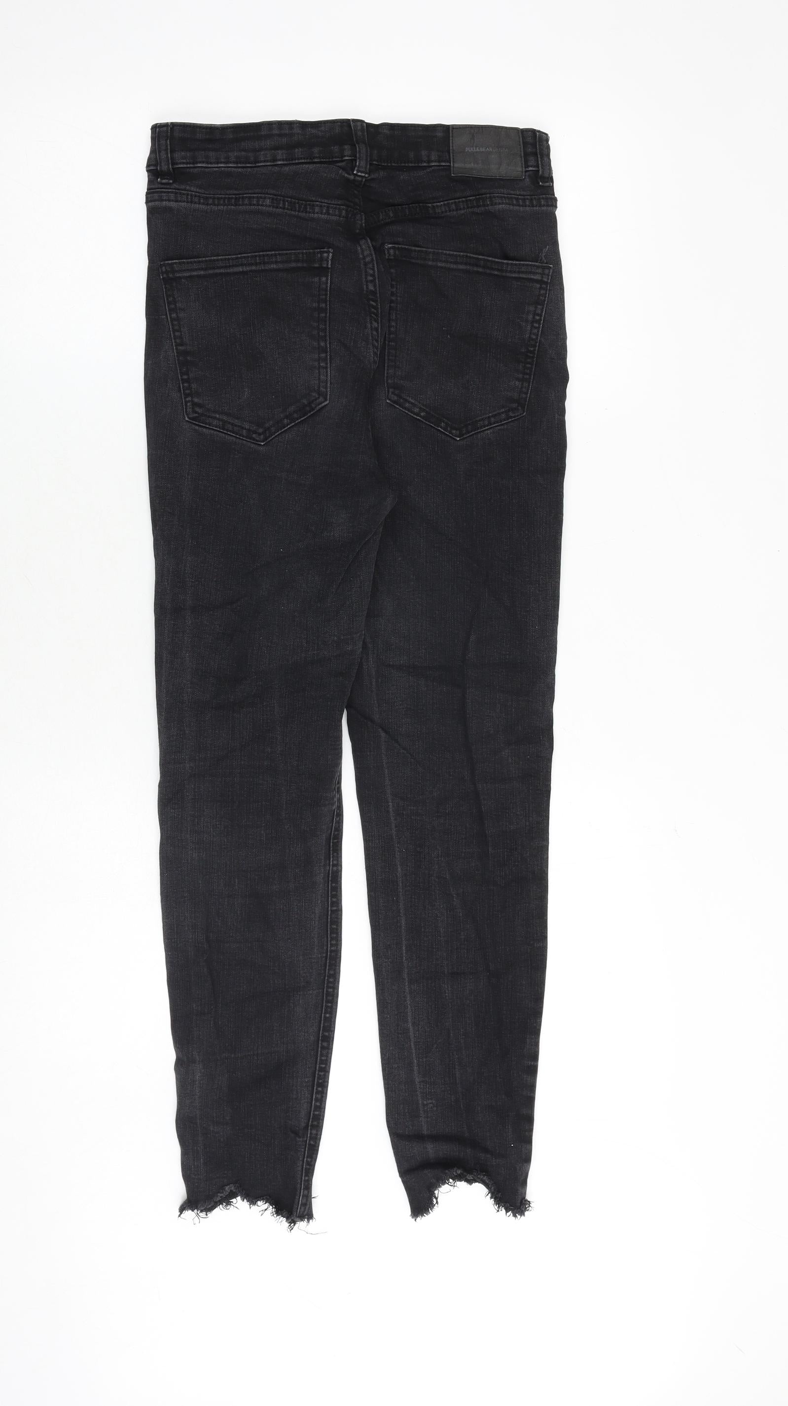 Pull&Bear Womens Grey Cotton Skinny Jeans Size 10 Slim Zip - Frayed Hem