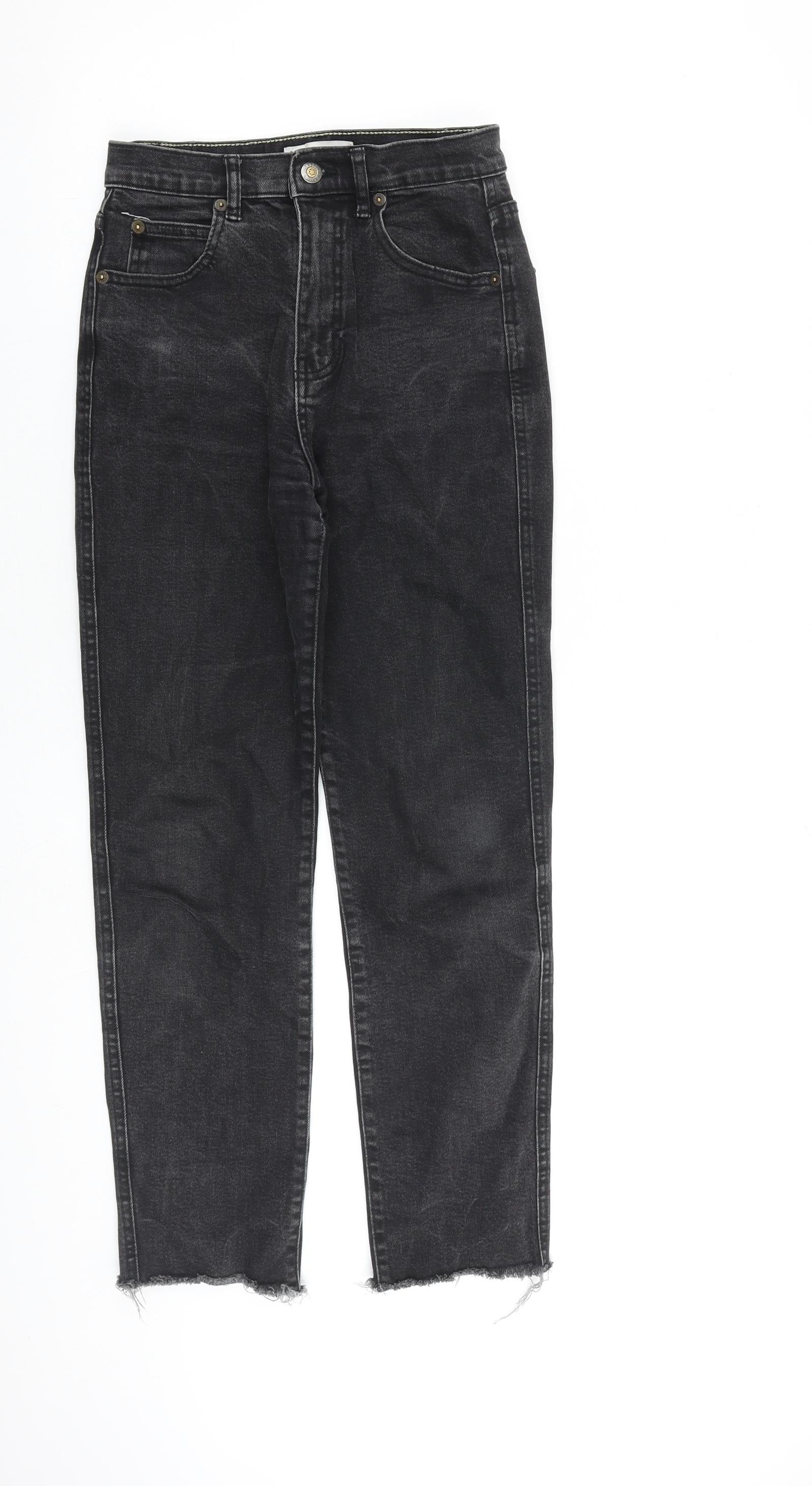 Pull&Bear Womens Grey Cotton Straight Jeans Size 6 L26 in Regular Zip - Raw Hem