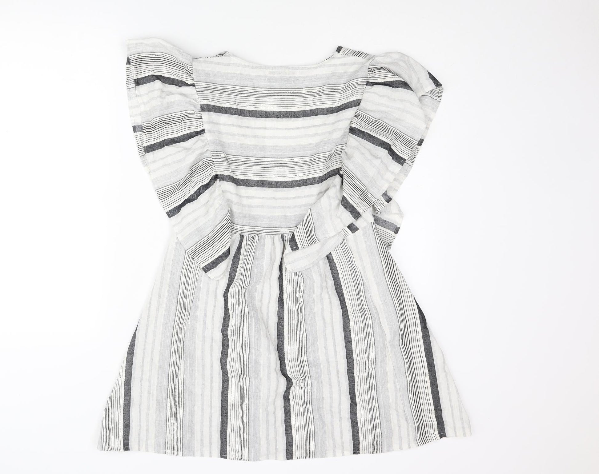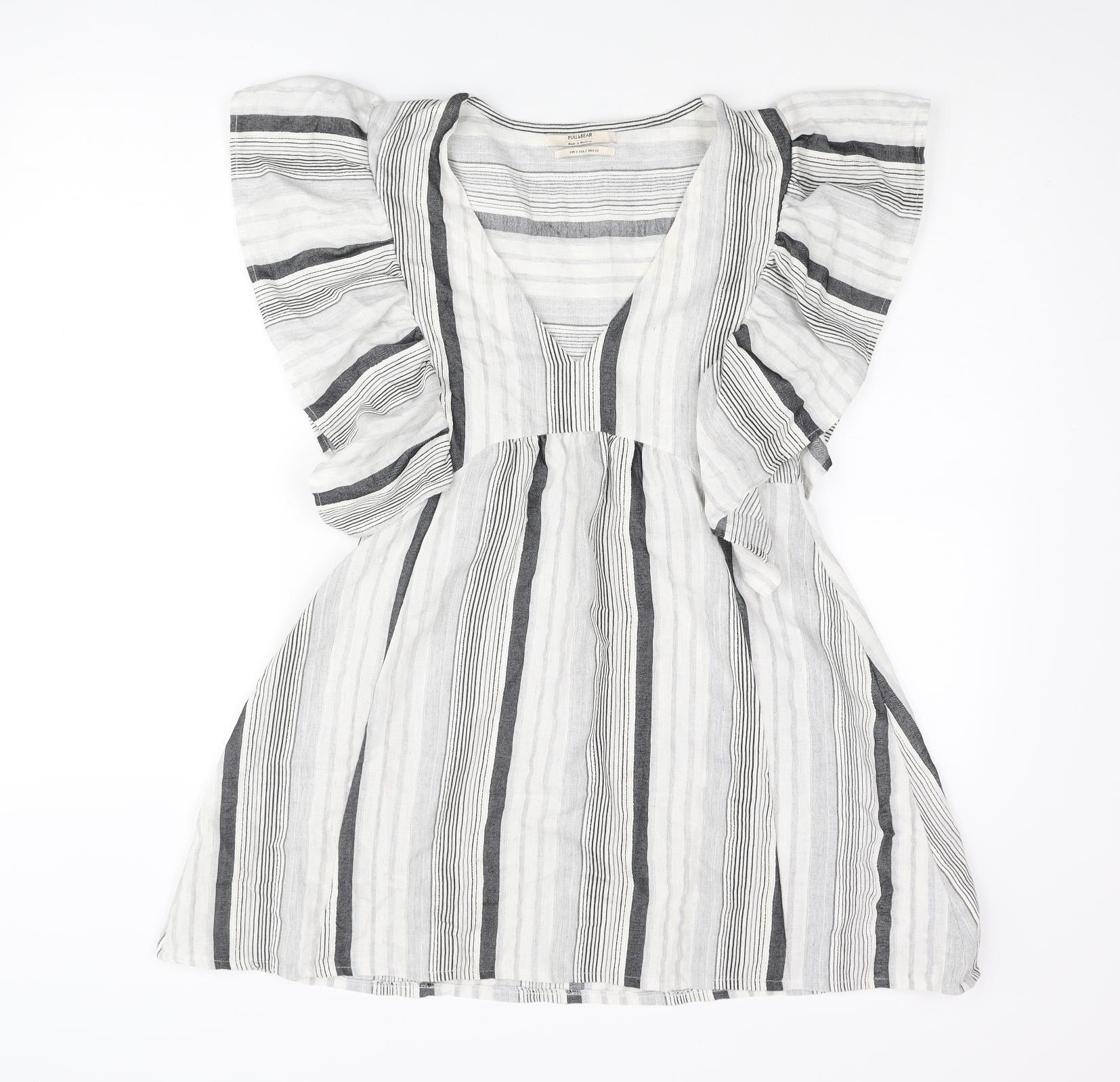 Pull&Bear Womens Grey Striped Polyester A-Line Size S V-Neck Pullover - Frill