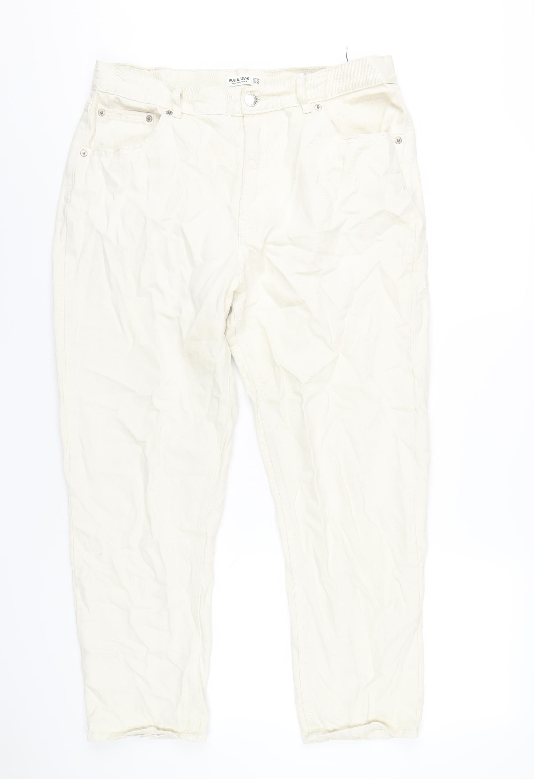 Pull&Bear Womens Ivory Cotton Straight Jeans Size 36 in L27 in Regular Zip