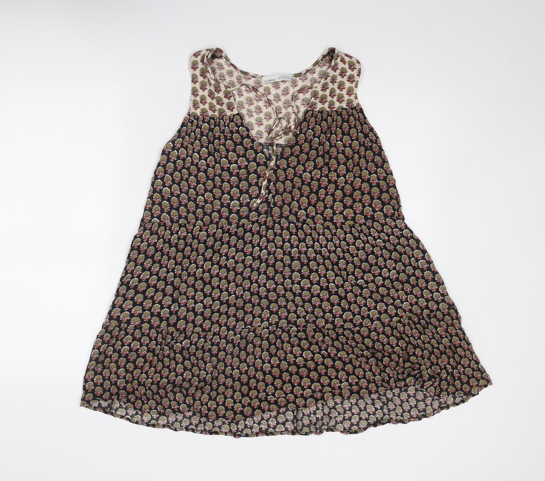Pull&Bear Womens Multicoloured Geometric Viscose Sheath Size S V-Neck Tie
