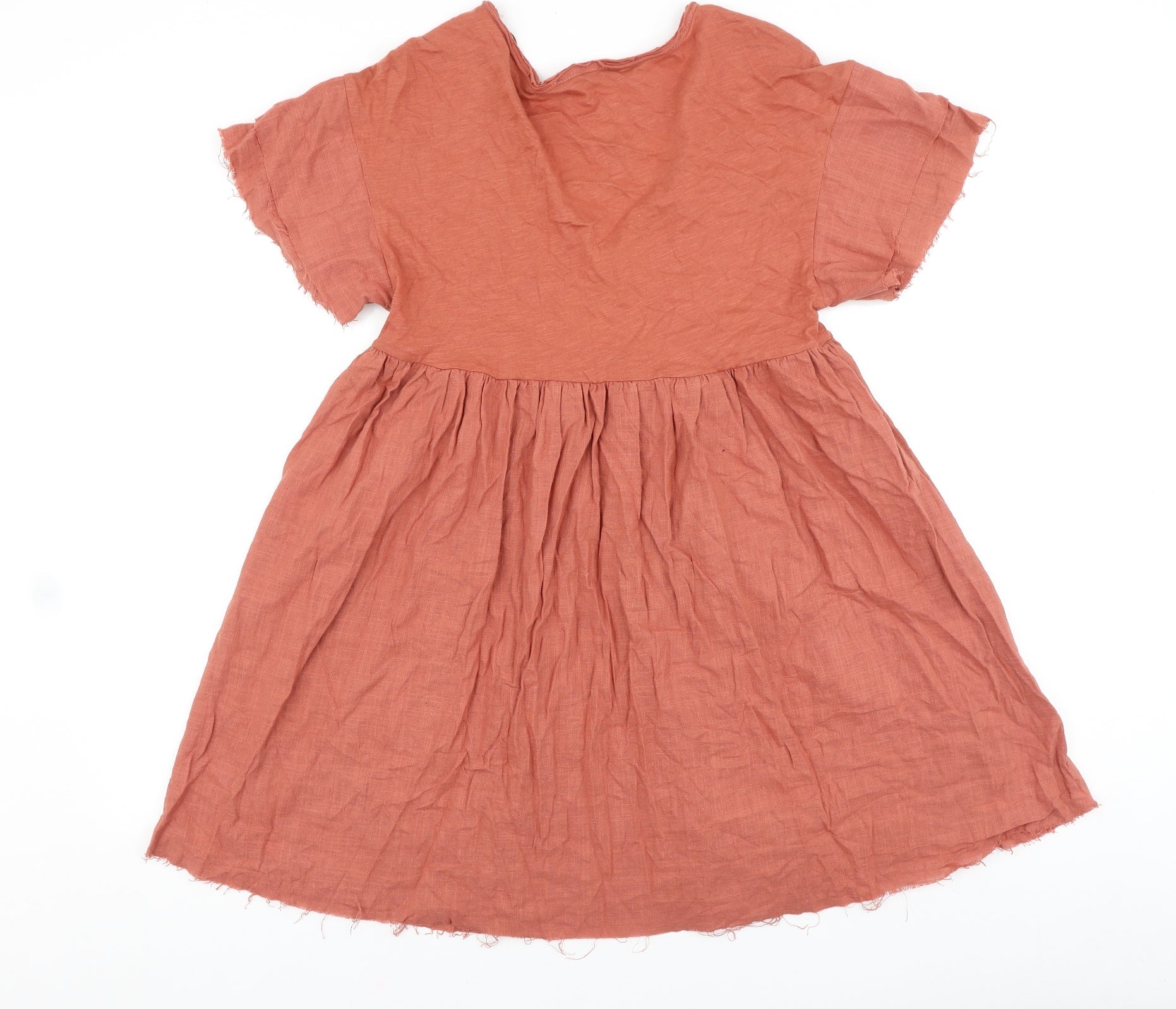 Pull&Bear Womens Orange 100% Cotton A-Line Size S V-Neck Button