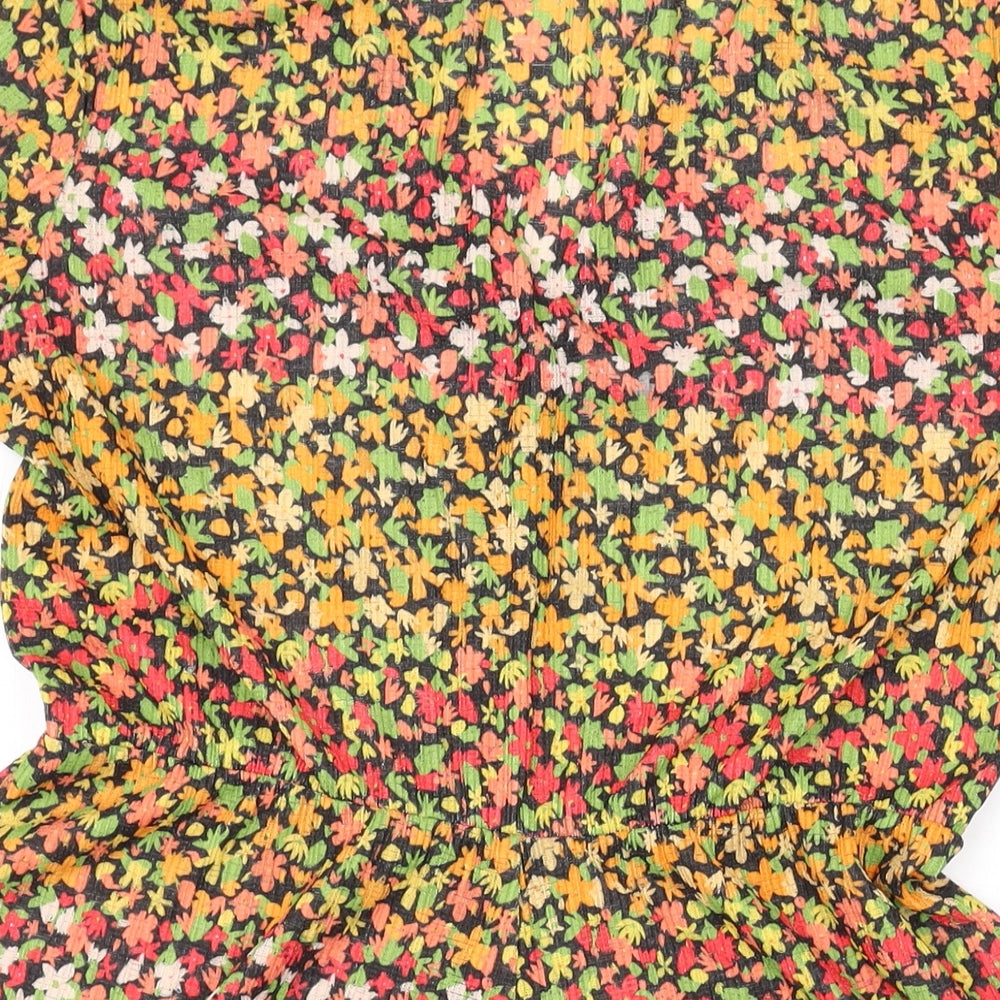 Pull&Bear Womens Orange Flecked Polyester Playsuit One-Piece Size M Button
