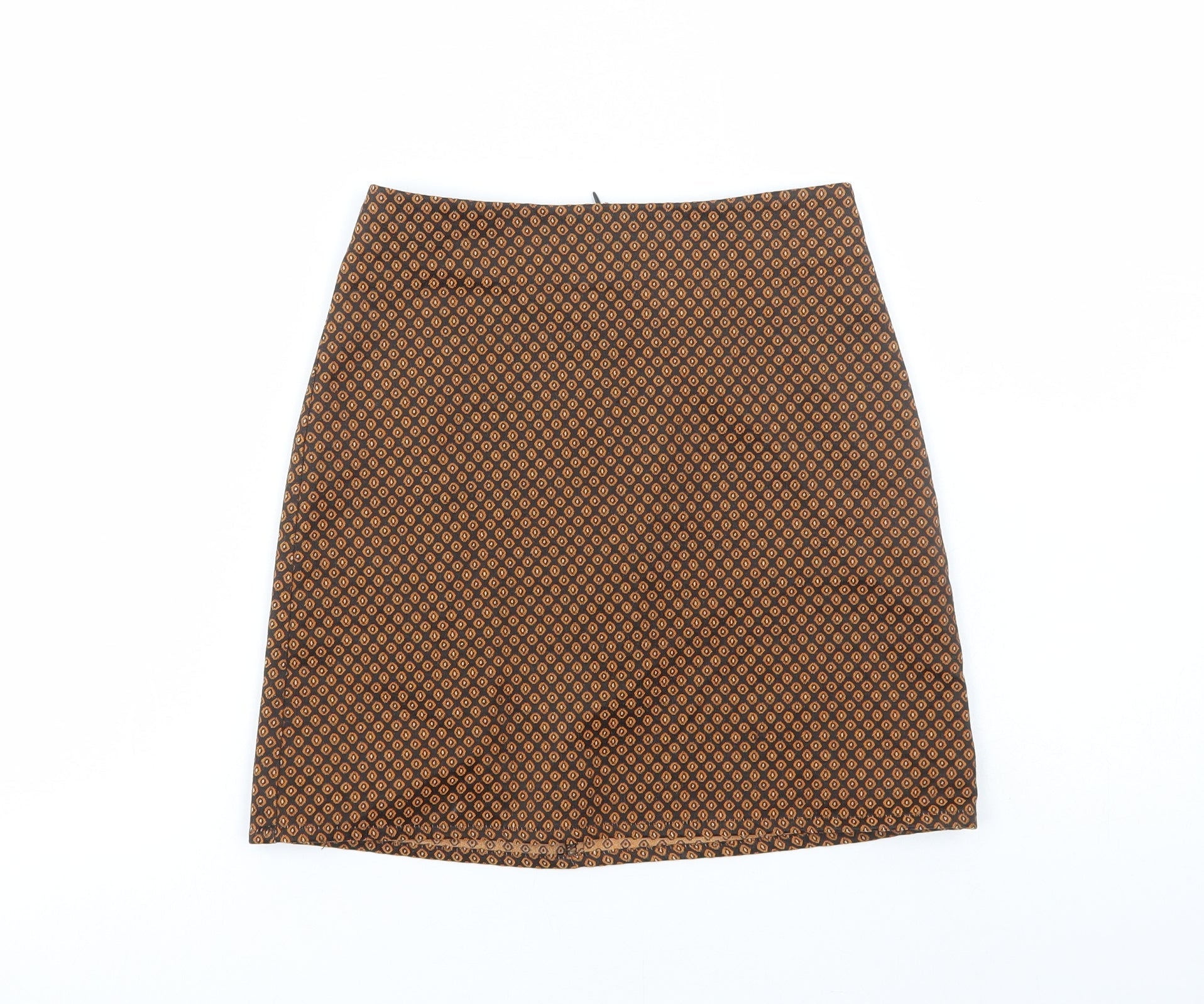 Pull&Bear Womens Orange Geometric Polyester Mini Skirt Size XS Zip