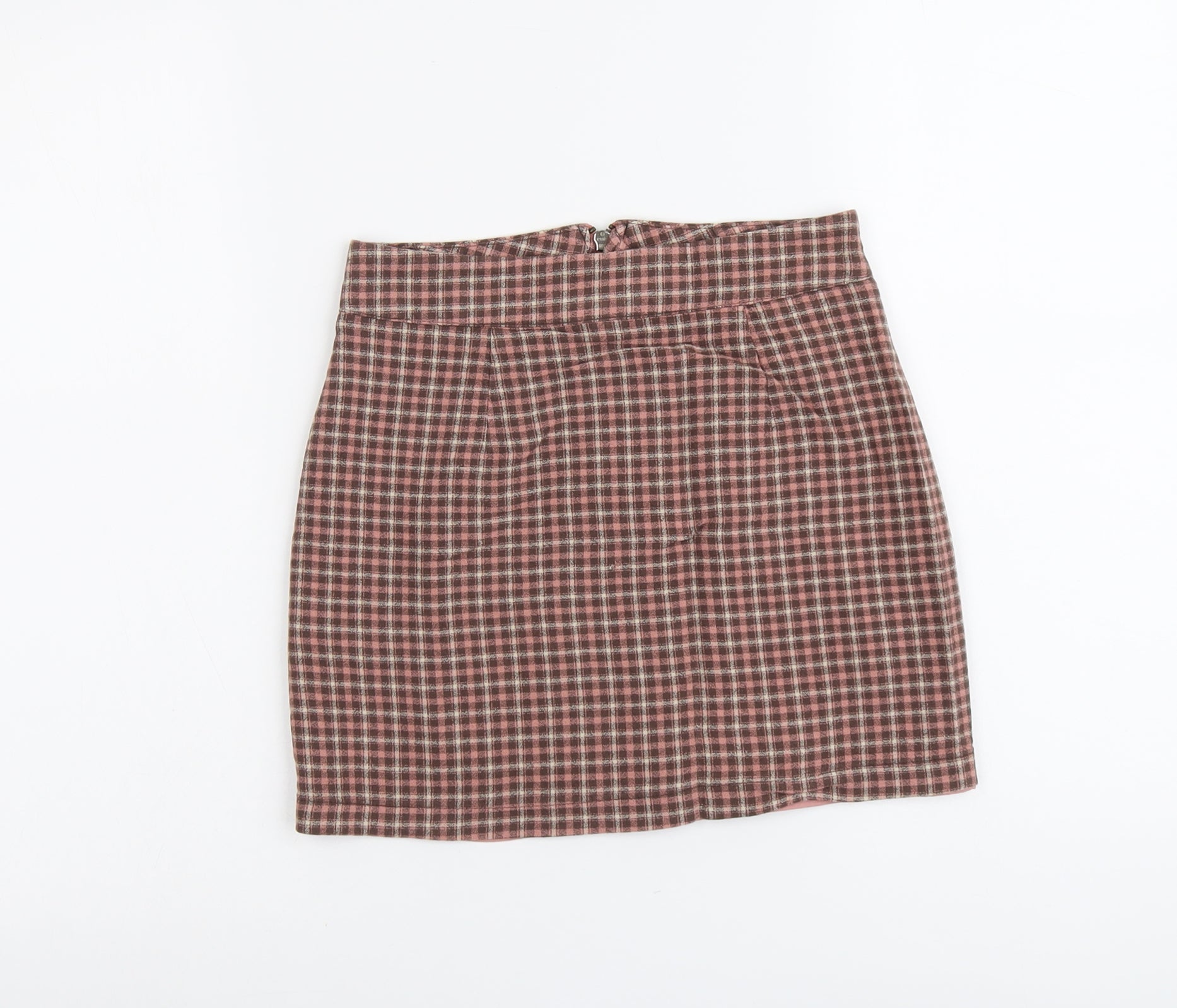 Pull&Bear Womens Pink Plaid Viscose Mini Skirt Size S Zip