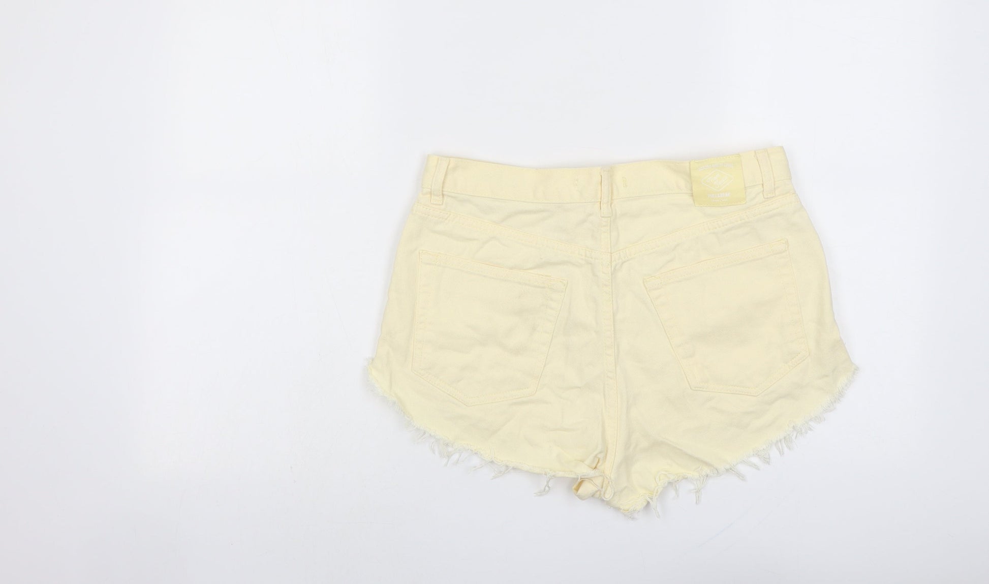 Pull&Bear Womens Yellow Cotton Hot Pants Shorts Size 12 L3 in Regular Button - Frayed Hem