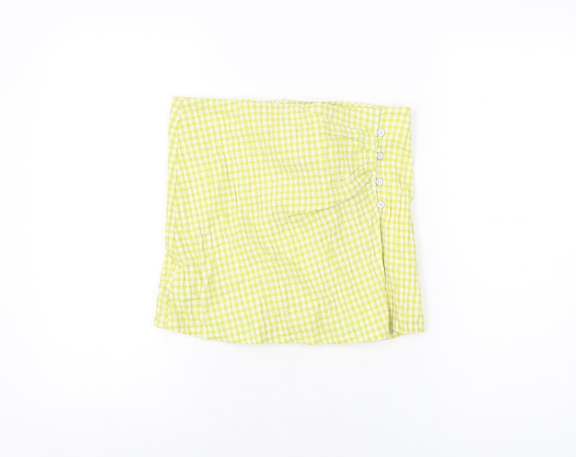 Pull&Bear Womens Yellow Geometric Polyester Skort Skirt Size M Zip
