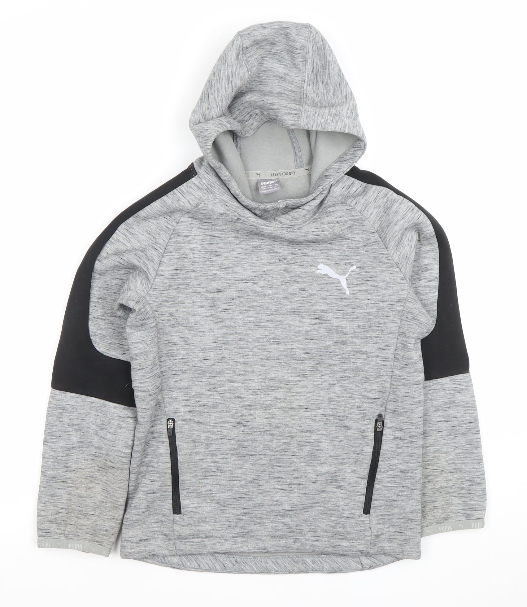 Puma Boys Grey Hoodie 9-10 Years Pullover Keeps You Dry Hooded Sweatshirt