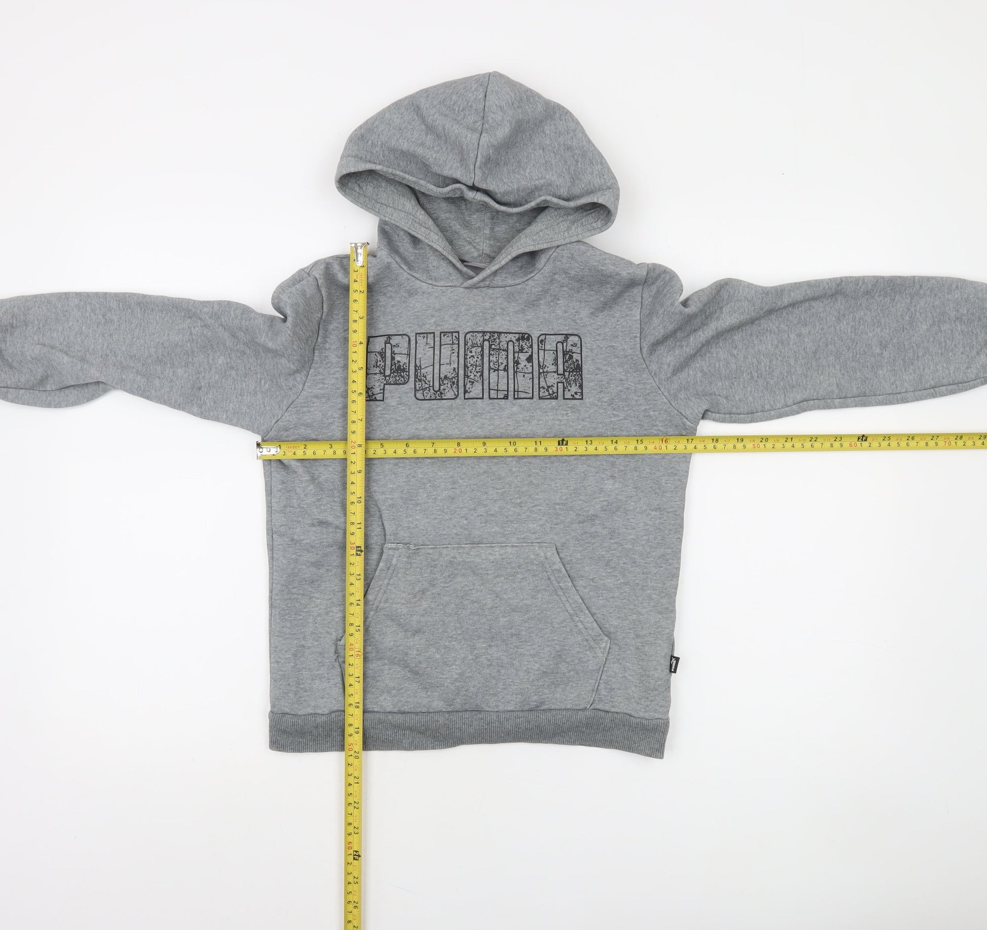 Puma Boys Grey Pullover Hoodie 11-12 Years Regular Fit Cotton Blend