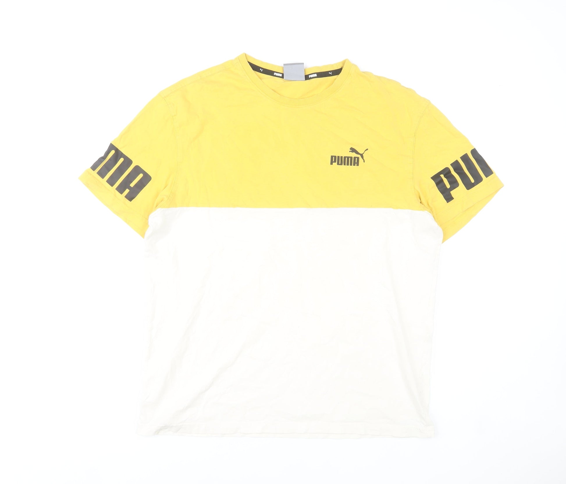 Puma Men Yellow White Colourblock Logo T-Shirt Size M