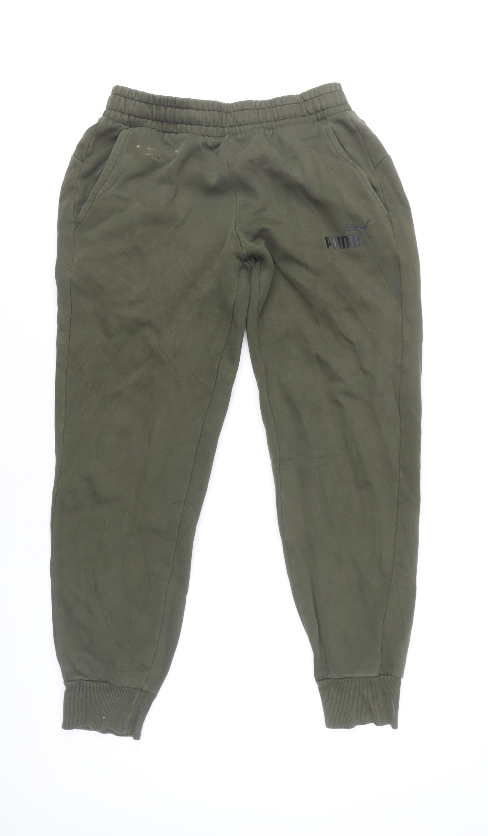 Puma Men's Green Jogger Trousers S Regular Fit Elastic Waist Cuffed