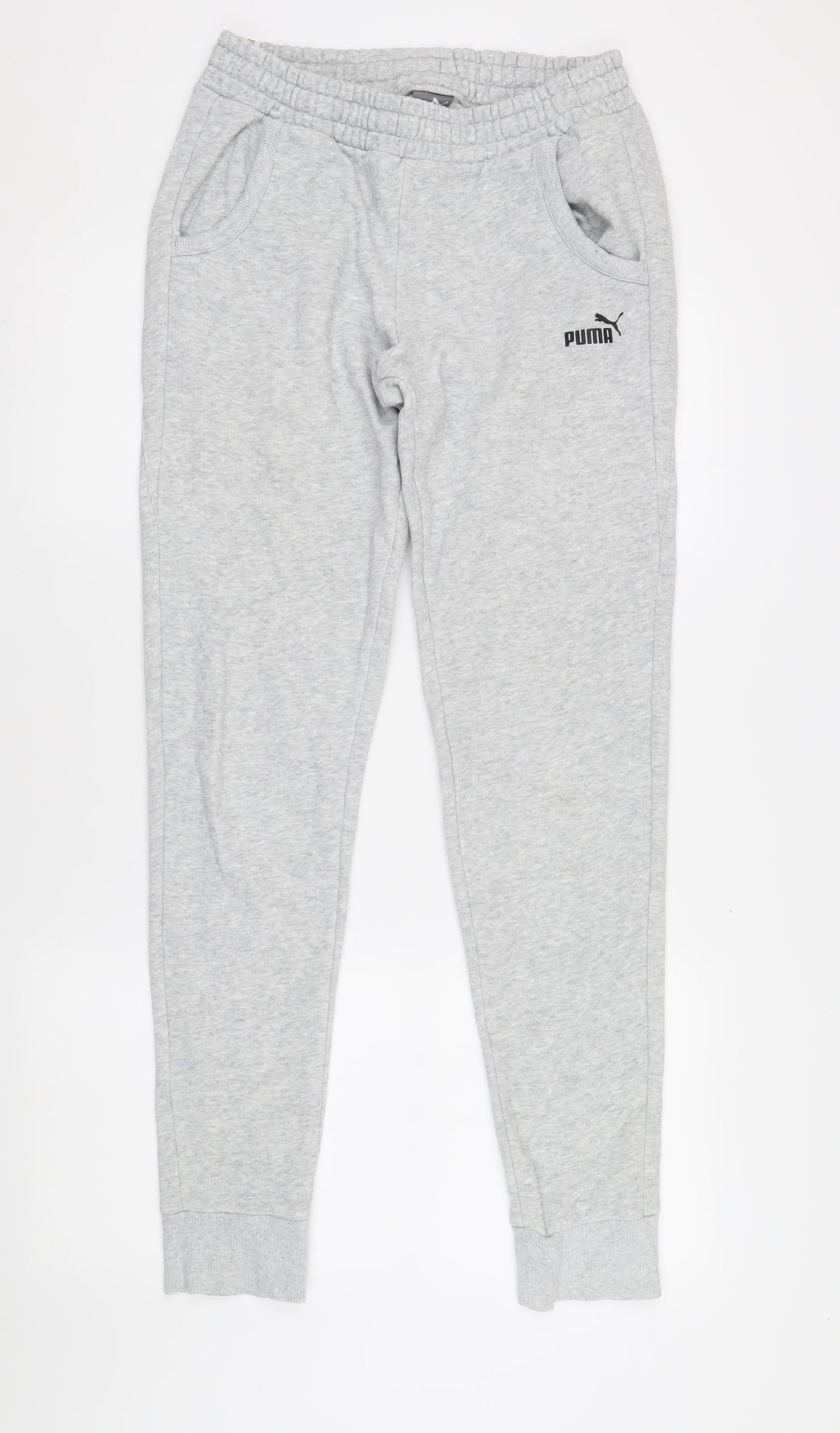 Puma Men's Grey Joggers, Size S, Sporty Fleece Trousers