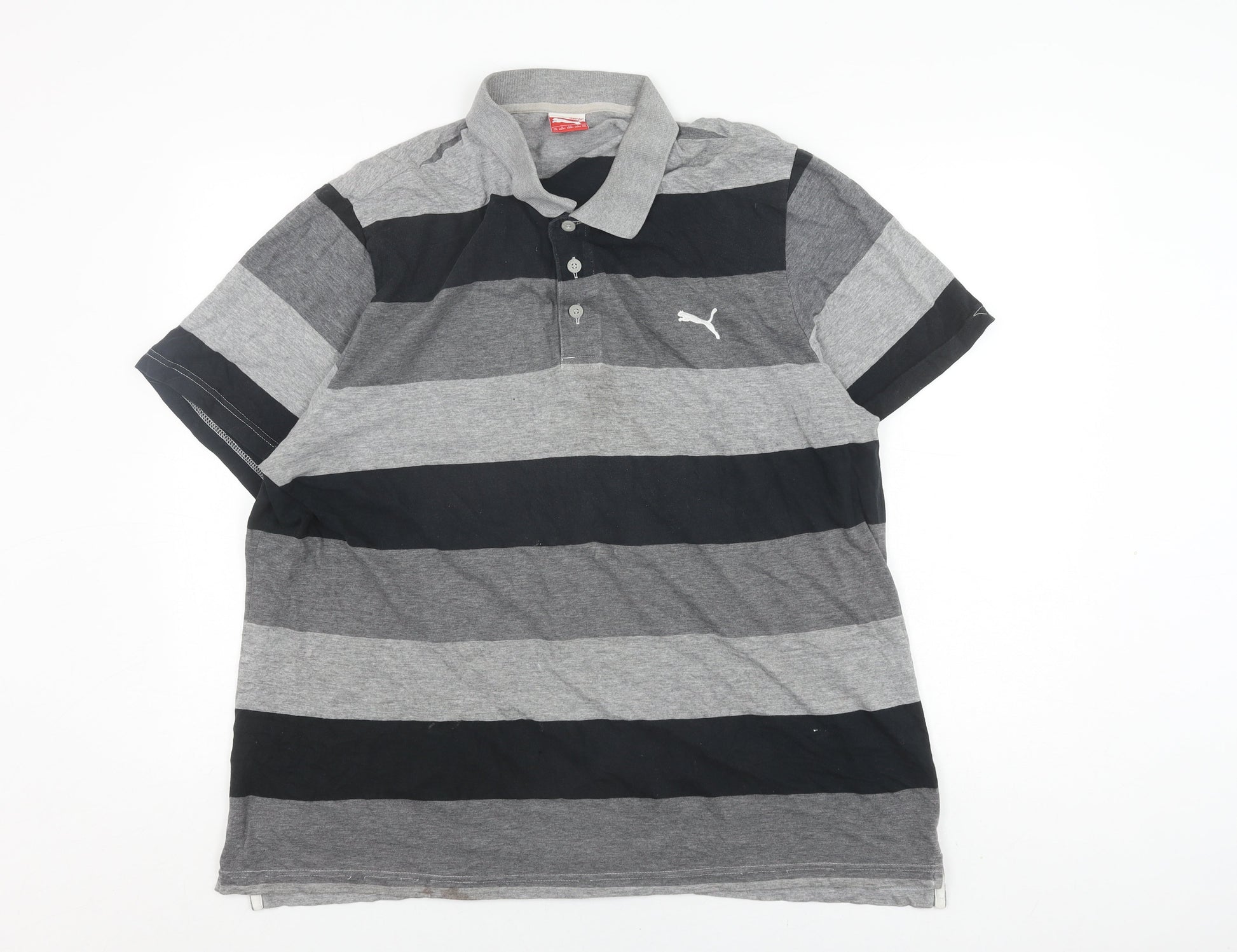 Puma Men's Grey Striped Polo Shirt XXL, Casual Style