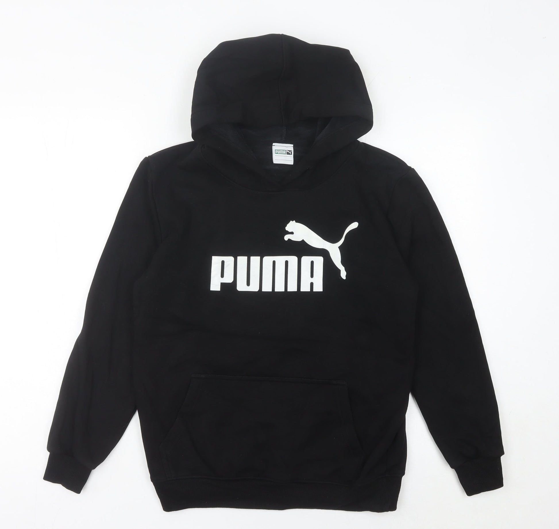 Puma Women Black Pullover Hoodie UK 10 Cotton Logo Sportswear