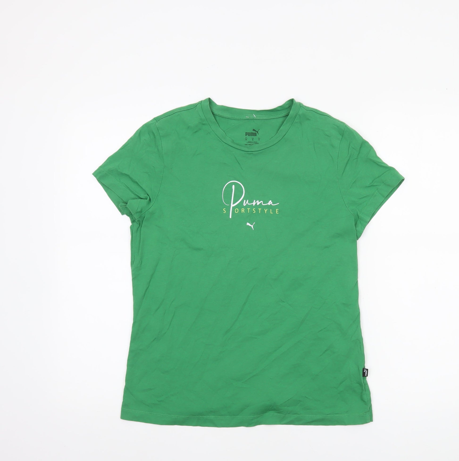 Puma Women’s Green Sportstyle T-Shirt Medium Basic Crew Neck