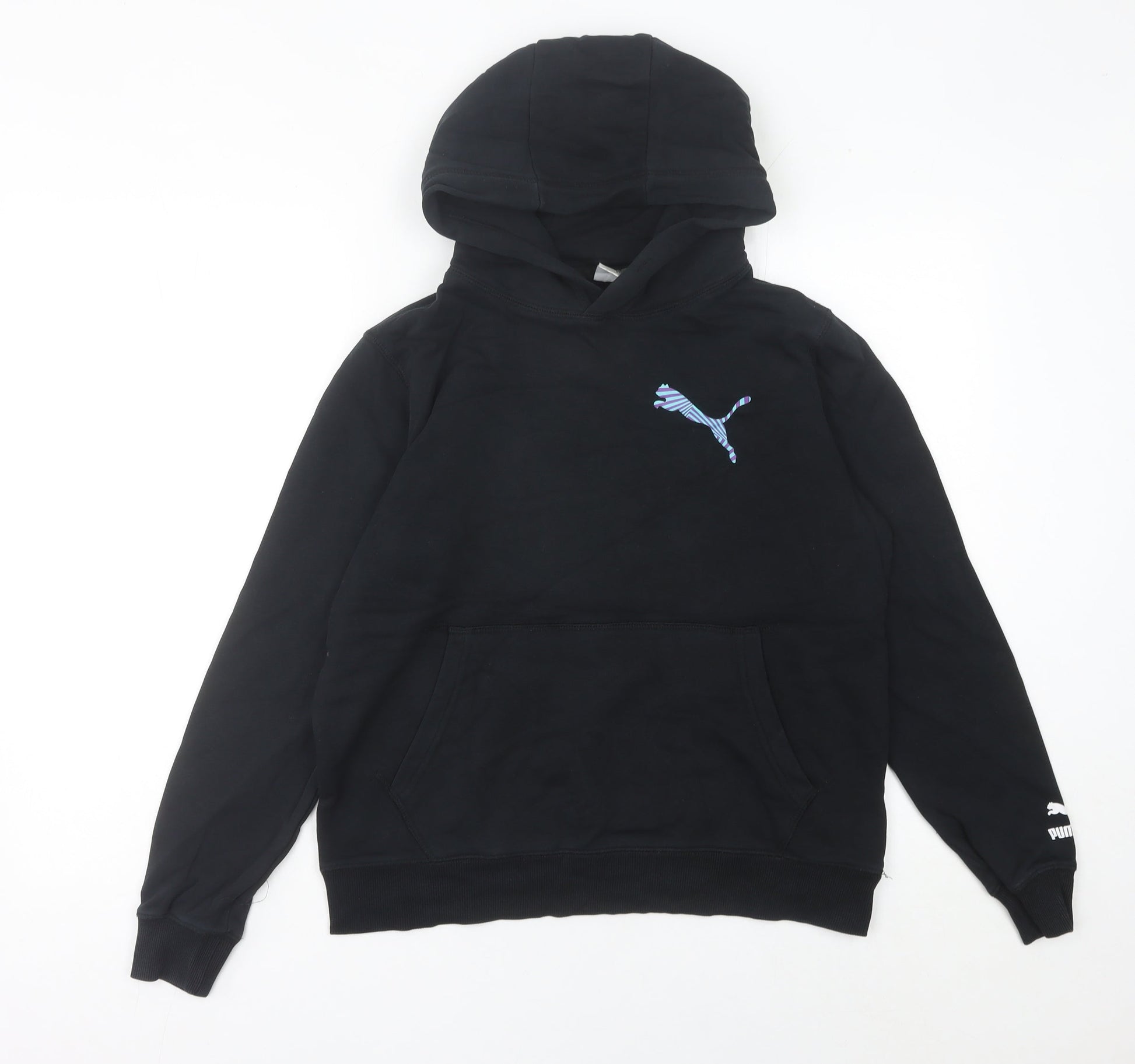 Puma Womens Black Hoodie UK 6 Graphic Print Pullover Sweatshirt