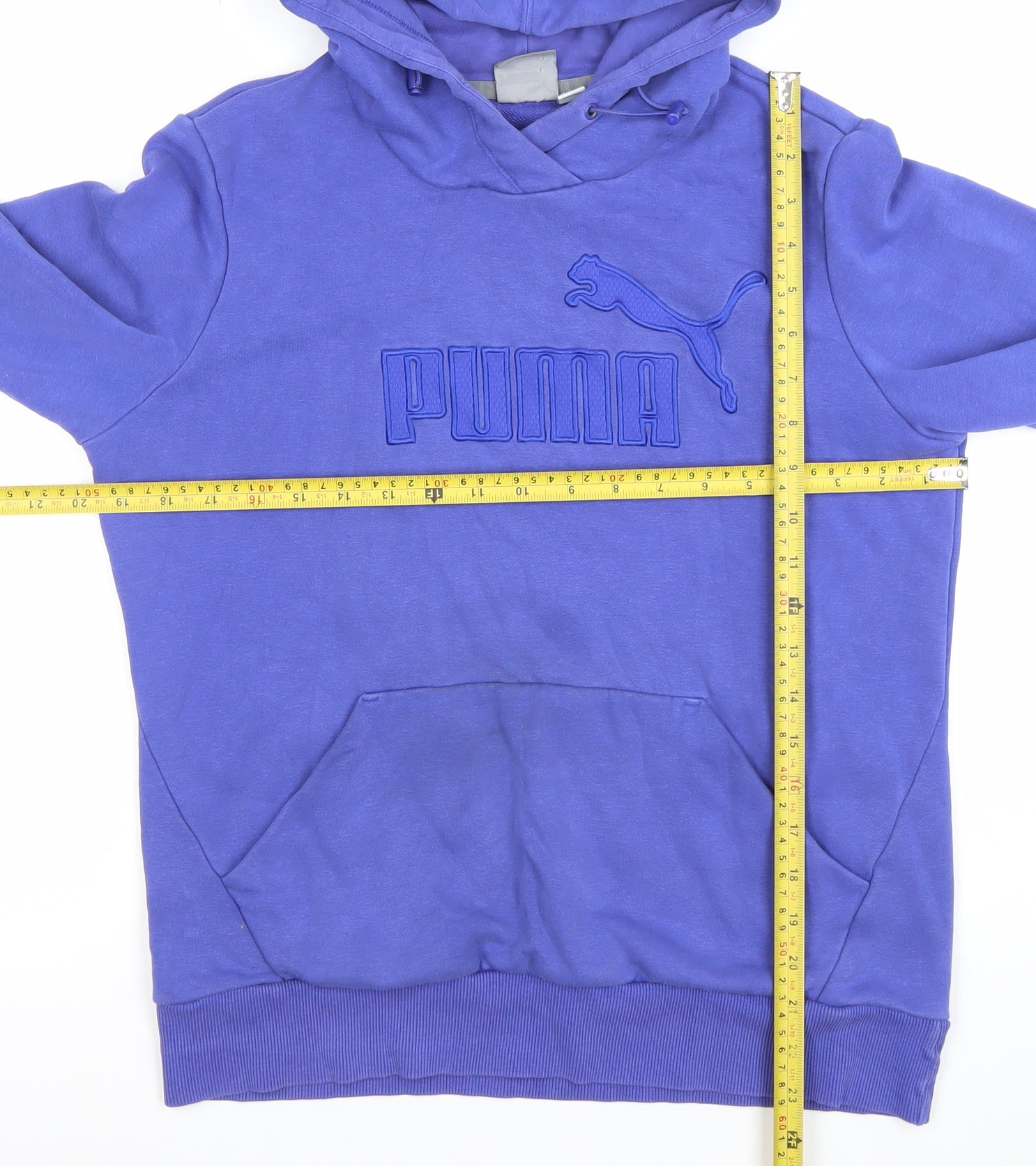 Puma Women's Blue Pullover Hoodie Size 14 Embroidered Logo Cotton