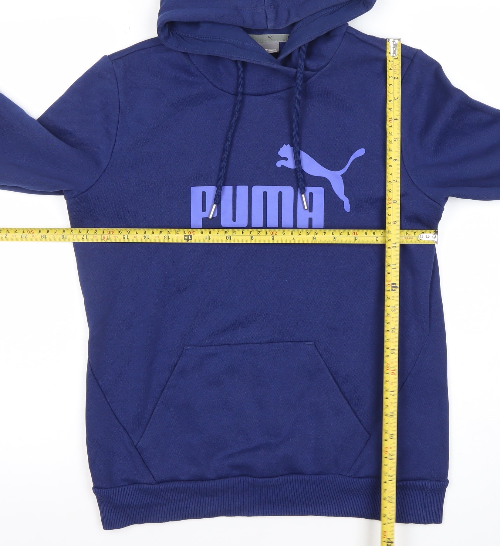 Puma Women's Blue Pullover Hoodie Size M Cotton Blend Logo Sweatshirt