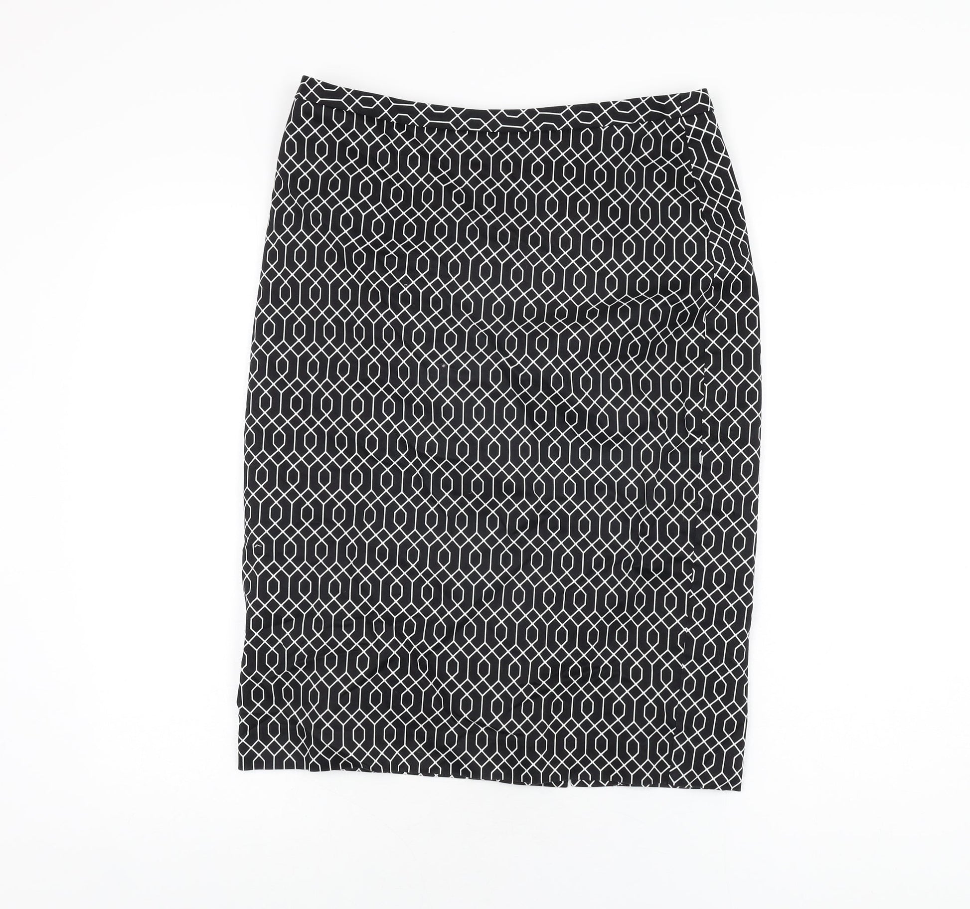 PURE Collection Womens Black Geometric Cotton Straight & Pencil Skirt Size 12 Zip